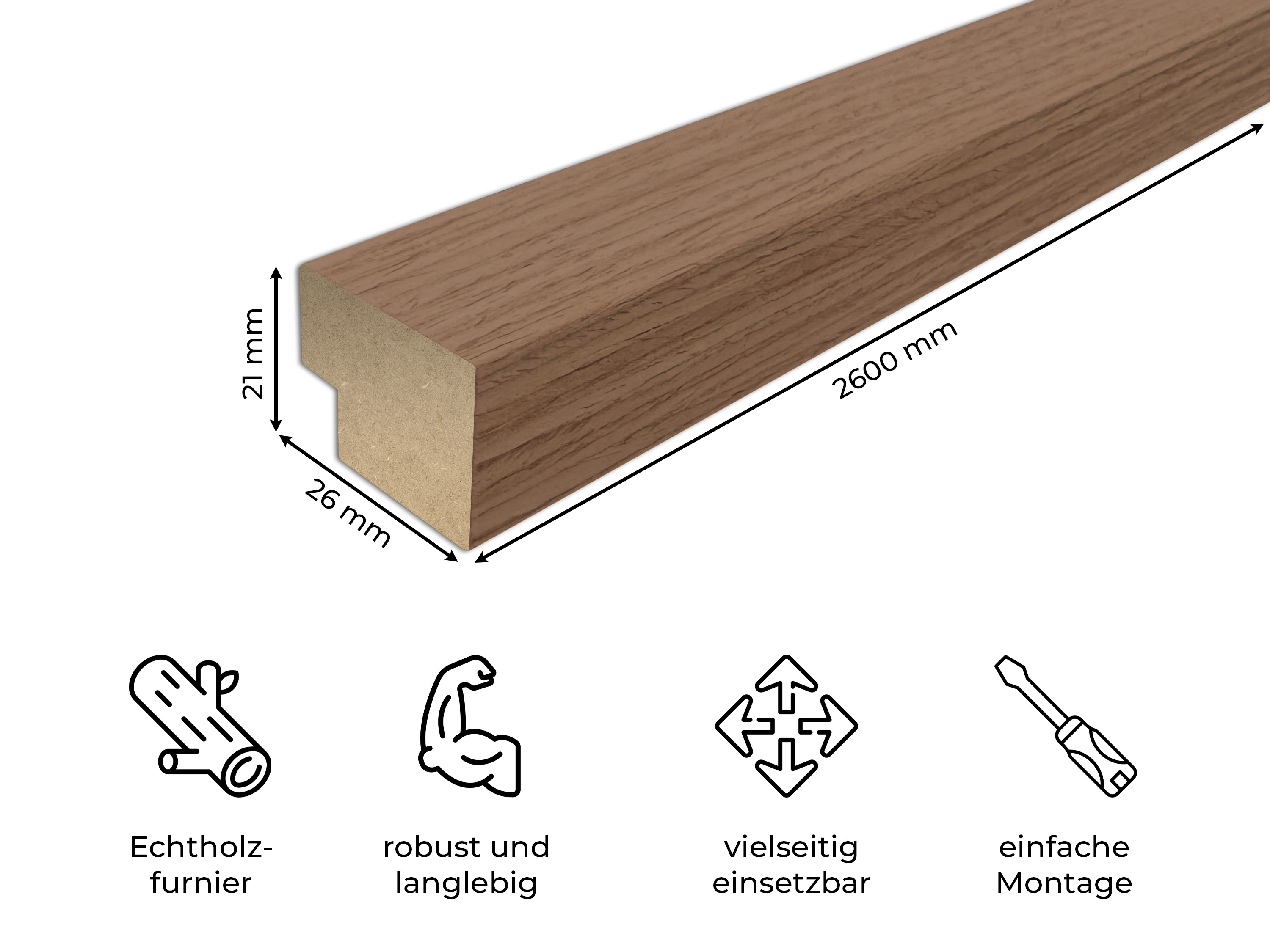 - Massiver Holzkern aus MDF (Medium Density Fibreboard), mit Echtholzfurmier