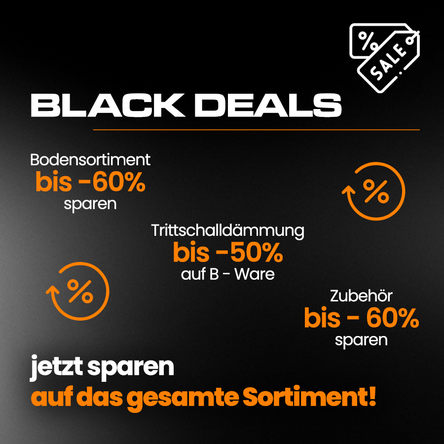 Willkommen bei den BLACK DEALS für Trittschalldämmungen, Parkett, Kork, Vinyl und Zubehör – Ihr Anlaufpunkt für hochwertige Sonderposten und B-Ware zu unschlagbaren Preisen!