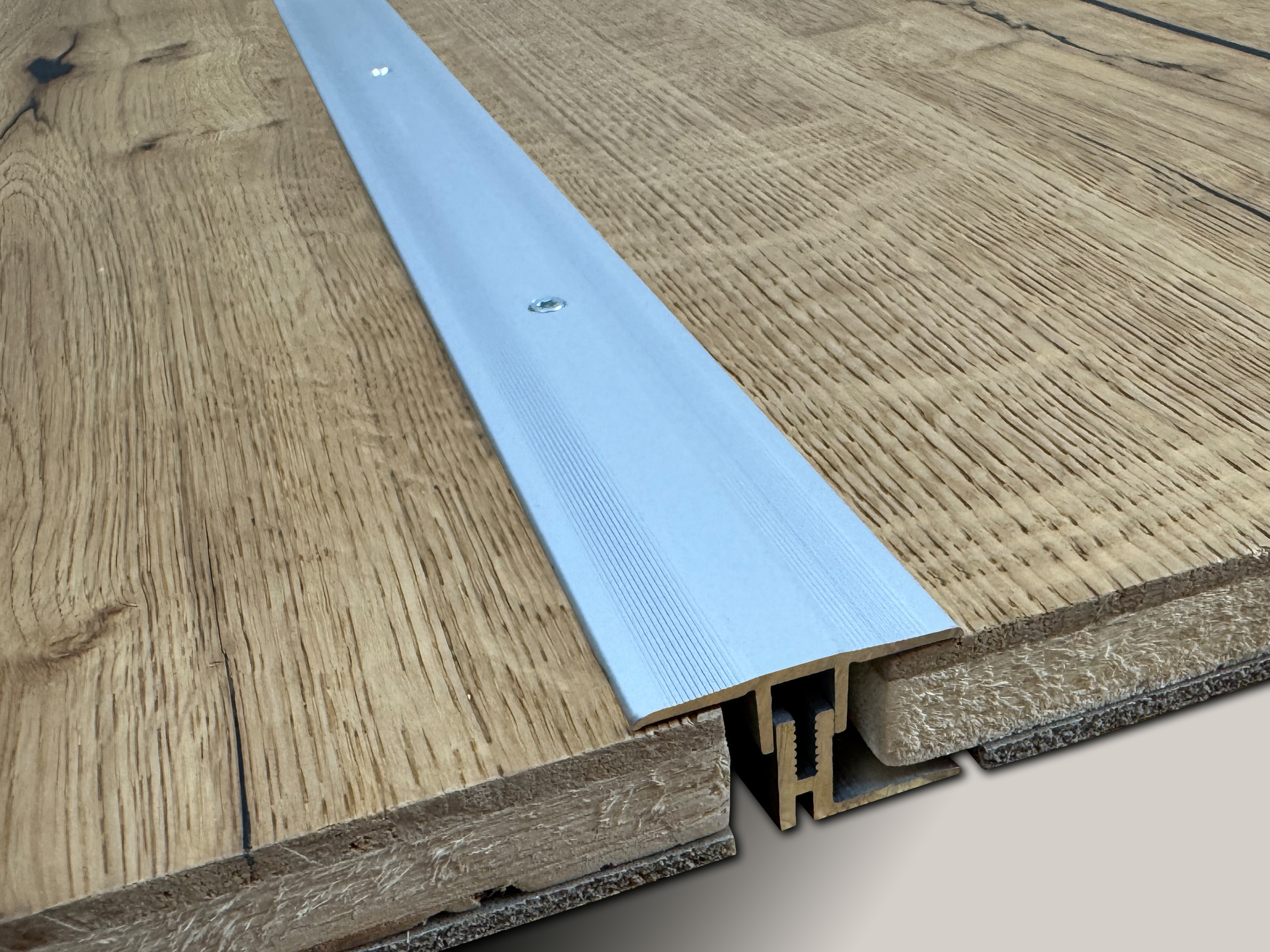 Äußerst stabiles Übergangsprofil für große Flächen, die durch eine Dehnungsfuge geteilt werden müssen oder für Türdurchgänge - Belagshöhe von 14-21 mm