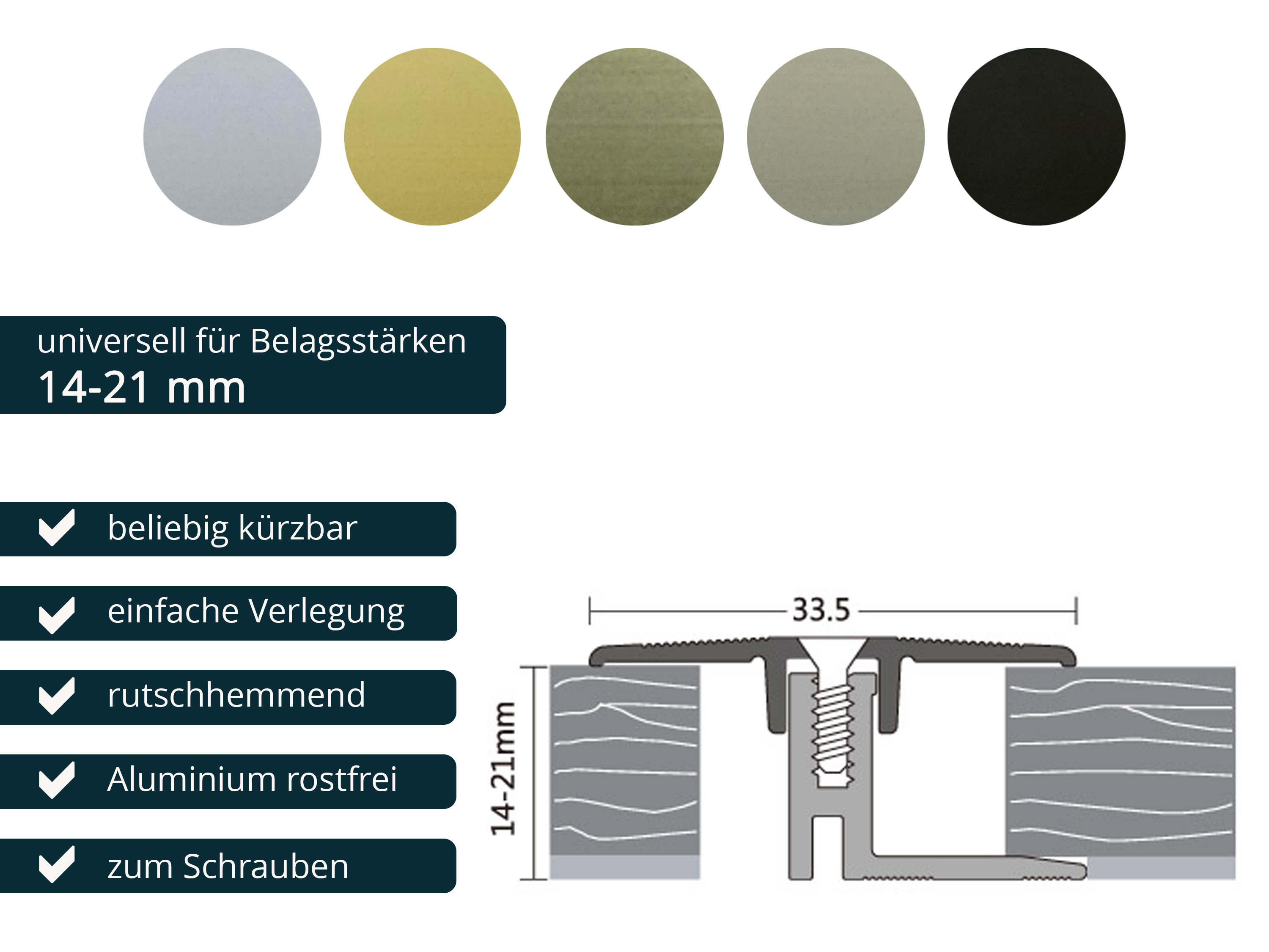 - Aluminium eloxiert - für Belagshöhen von 14-21 mm