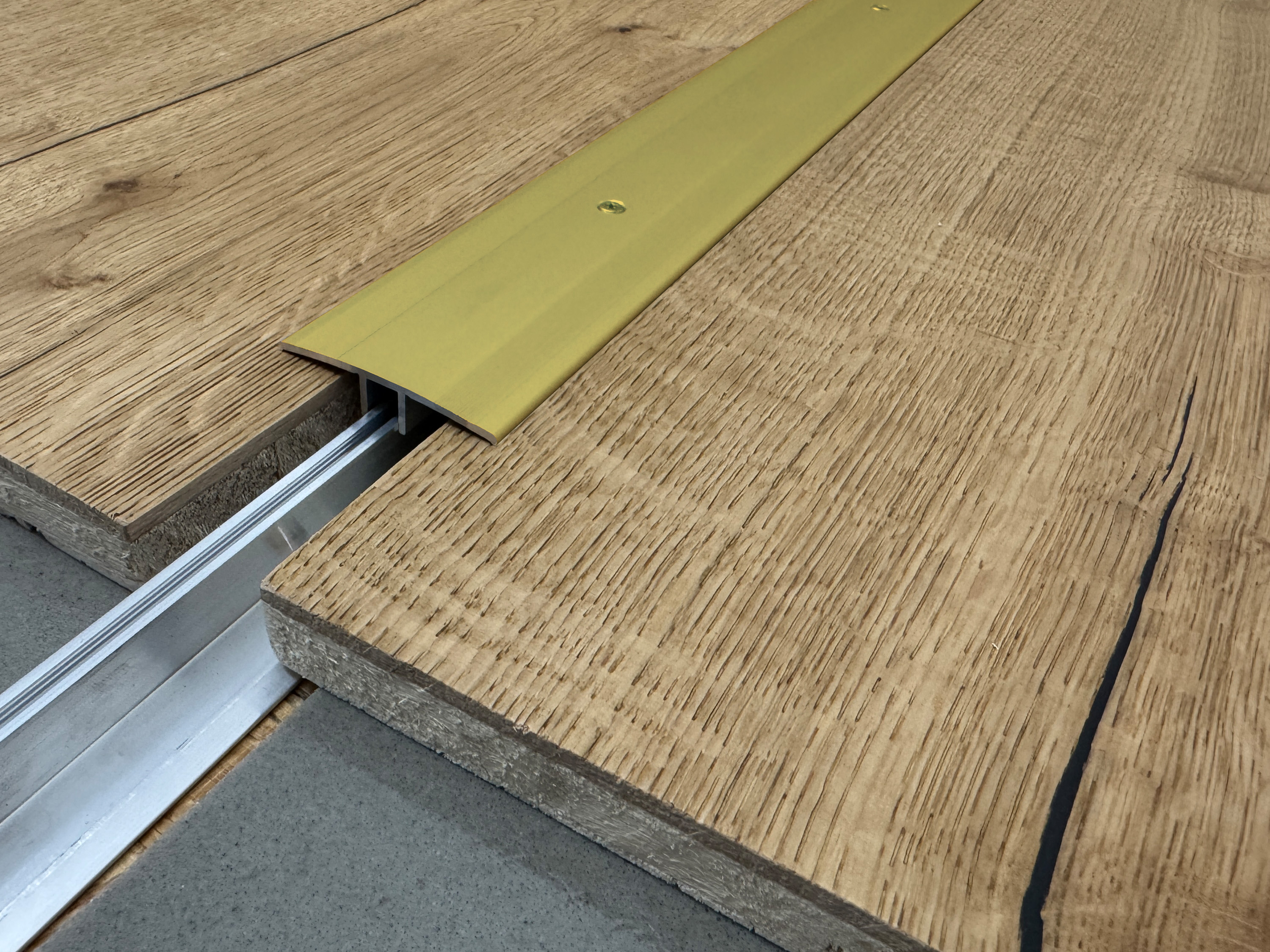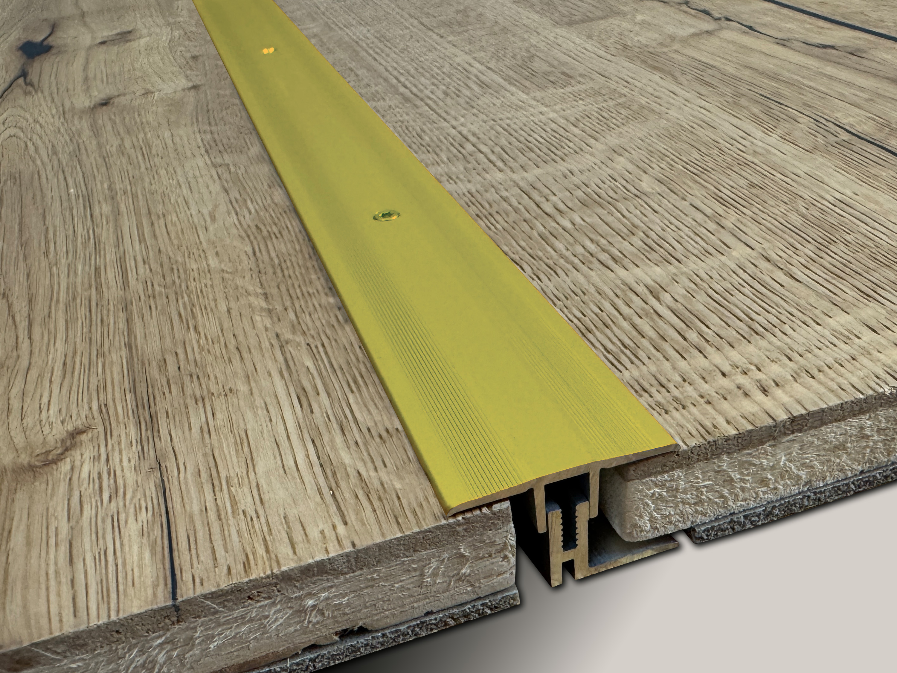 Äußerst stabiles Übergangsprofil für große Flächen, die durch eine Dehnungsfuge geteilt werden müssen oder für Türdurchgänge - Belagshöhe von 14-21 mm