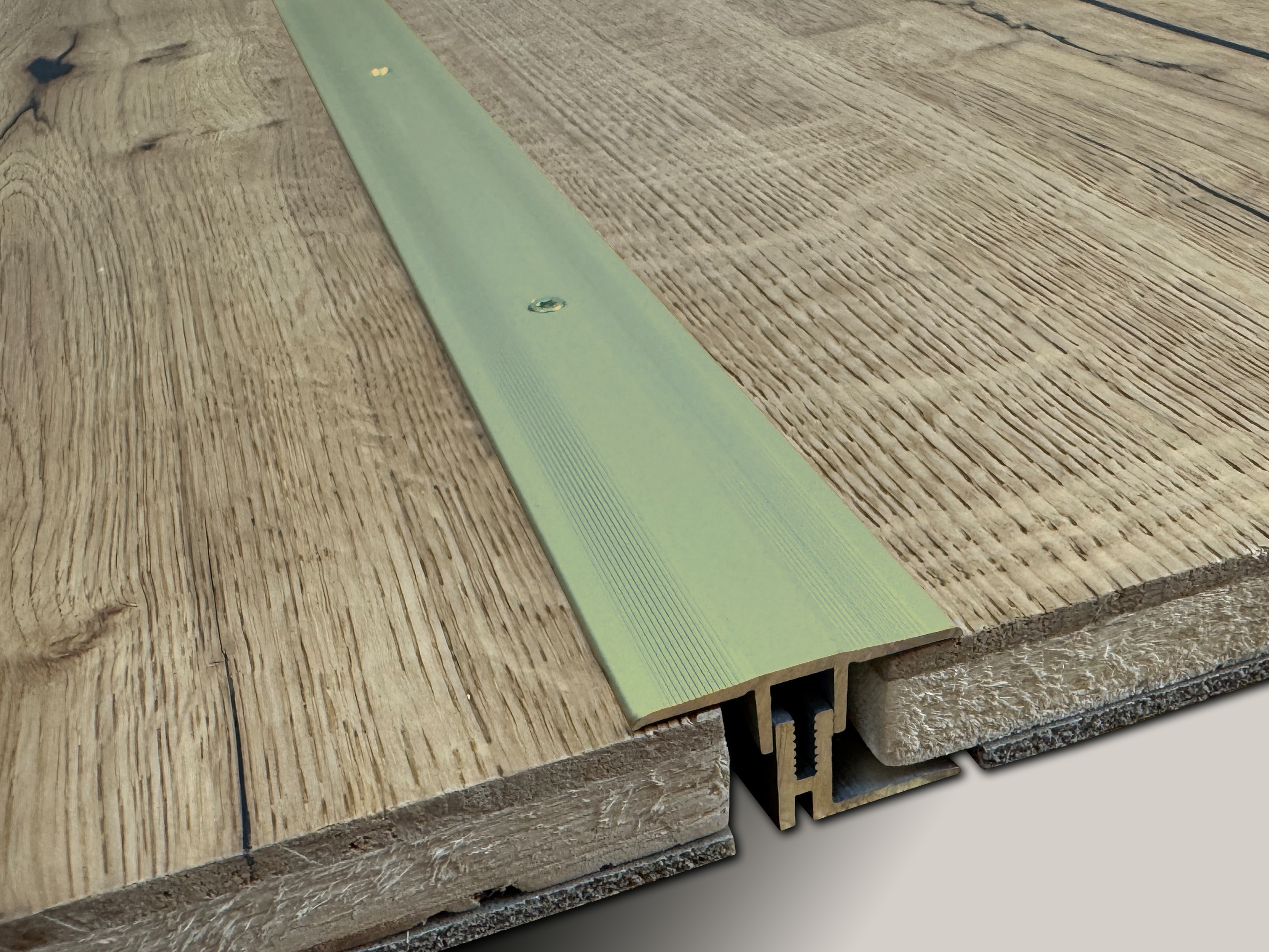 Äußerst stabiles Übergangsprofil für große Flächen, die durch eine Dehnungsfuge geteilt werden müssen oder für Türdurchgänge - Belagshöhe von 14-21 mm