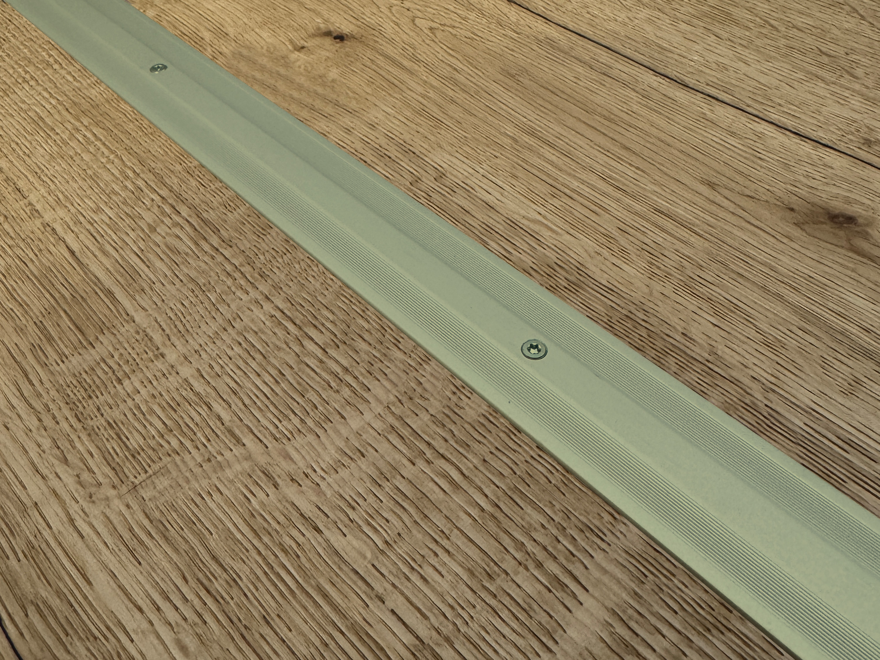 Äußerst stabiles Übergangsprofil für große Flächen, die durch eine Dehnungsfuge geteilt werden müssen oder für Türdurchgänge mit einer Belagshöhe von 14-21 mm. Durch die schmale Sichtbreite von nur 33 mm verschwindet das Profil bei geschlossenem Zustand der Tür unsichtbar darunter. Die spezielle Konstruktion (automatische Höheneinstellung) ermöglicht auch den Einsatz mit geringen Höhenunterschieden. Für etwas breitere Dehnungsfugen wurde die Serie mit einem 45 mm und 60 mm breiten Übergangsprofil Profil ergänzt.