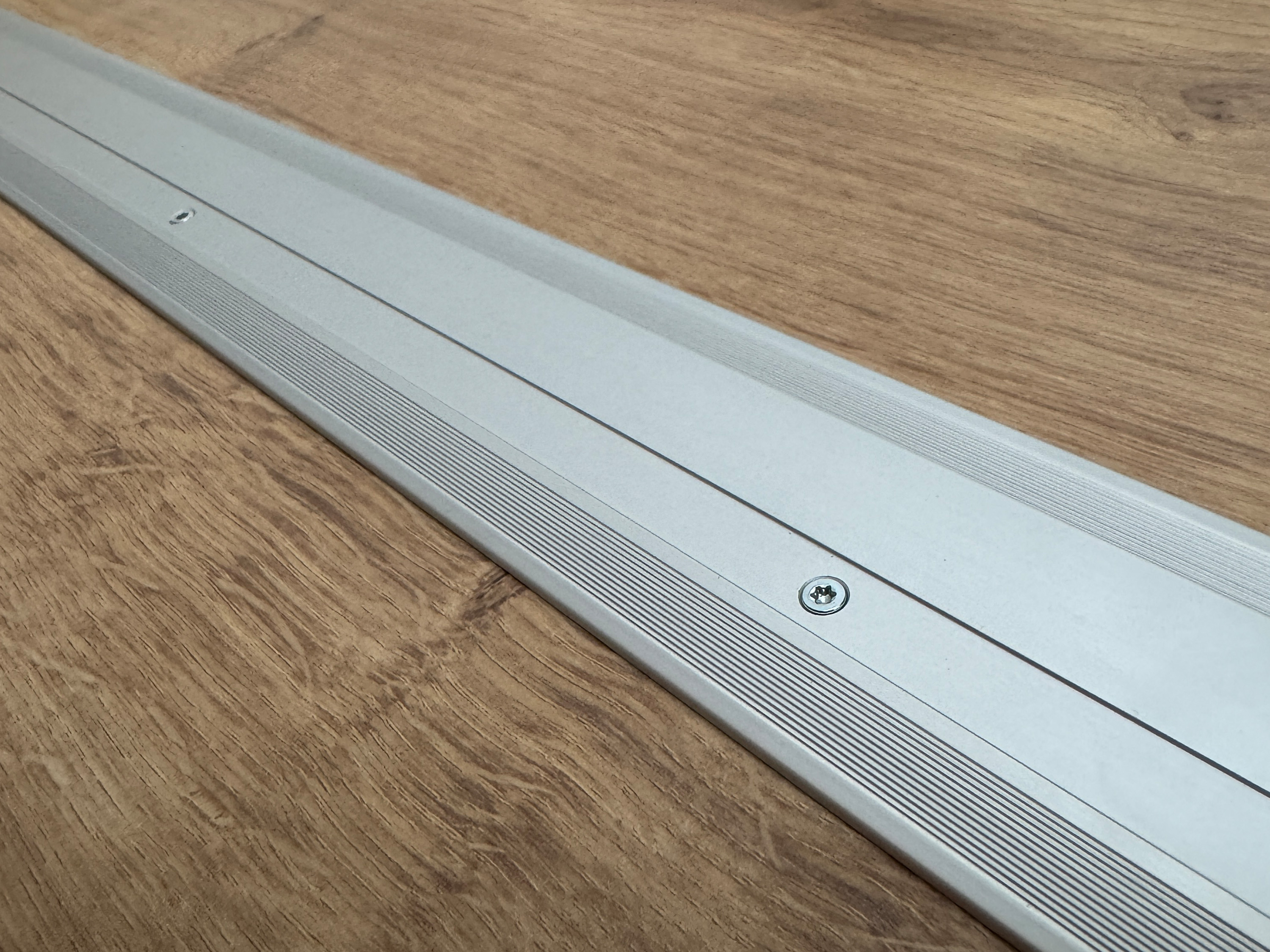 Äußerst stabiles 2-teiliges Abschlussprofil für den Abschluss von Laminat- oder Parkettböden an der Wand, Terrassentüren oder Türschwellen, Sichtbreite 21 mm. Durch die spezielle Konstruktion (automatische, stufenlose Höheneinstellung) für Böden mit einer Belagshöhe von 7-16 mm einsetzbar. Anwendung: Als erstes wird das Basisprofil auf dem Untergrund verschraubt bzw. bei Einsatz einer Warmwasser Fußbodenheizung nach erfolgter Grundierung auf dem Estrich mit Soudal High Tack Montagekleber verklebt. Nach erfolgter Verlegung des Fußbodens wird das Oberprofil auf das Basisprofil aufgelegt. Die beiden Stege greifen über den Schraubkanal des Basisprofils. Mit den beigefügten Schrauben wird es im Schraubkanal befestigt. TIPP: Es ist ratsam sich vom Oberteil des Profils ein kurzes Musterstück (etwa 2 cm) zum Verlegen abzuschneiden. Dadurch wird sichergestellt das die verlegenden Fußboden Dielen optimal zum Basisprofil (Abstand ca. 5-8 mm / Dehnungsfuge) und nicht zu kurz (Abdeckung Oberteil) geschnitten werden.