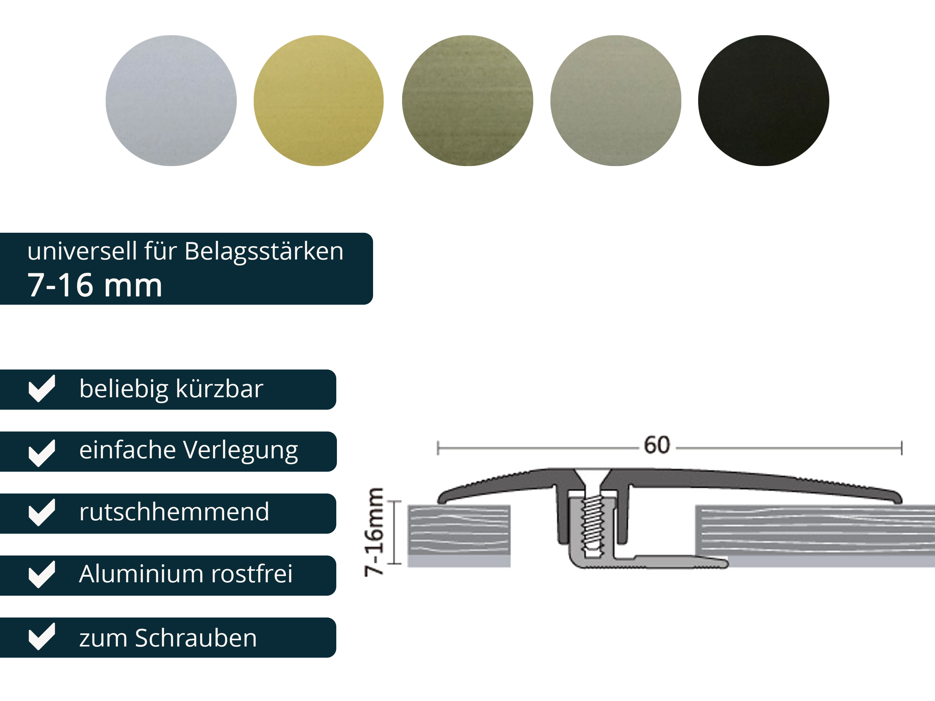 - Aluminium eloxiert - für Belagshöhen von 7 - 16 mm