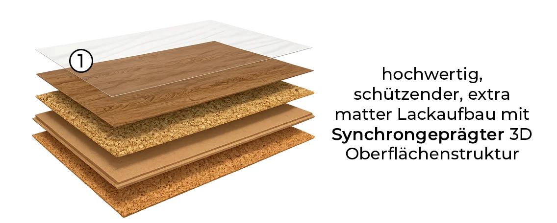 Dank der schützenden Nutzschicht sind Kork-Designböden besonders widerstandsfähig und langlebig. Sie eignen sich hervorragend für den täglichen Gebrauch und bleiben auch bei intensiver Nutzung formstabil und pflegeleicht.