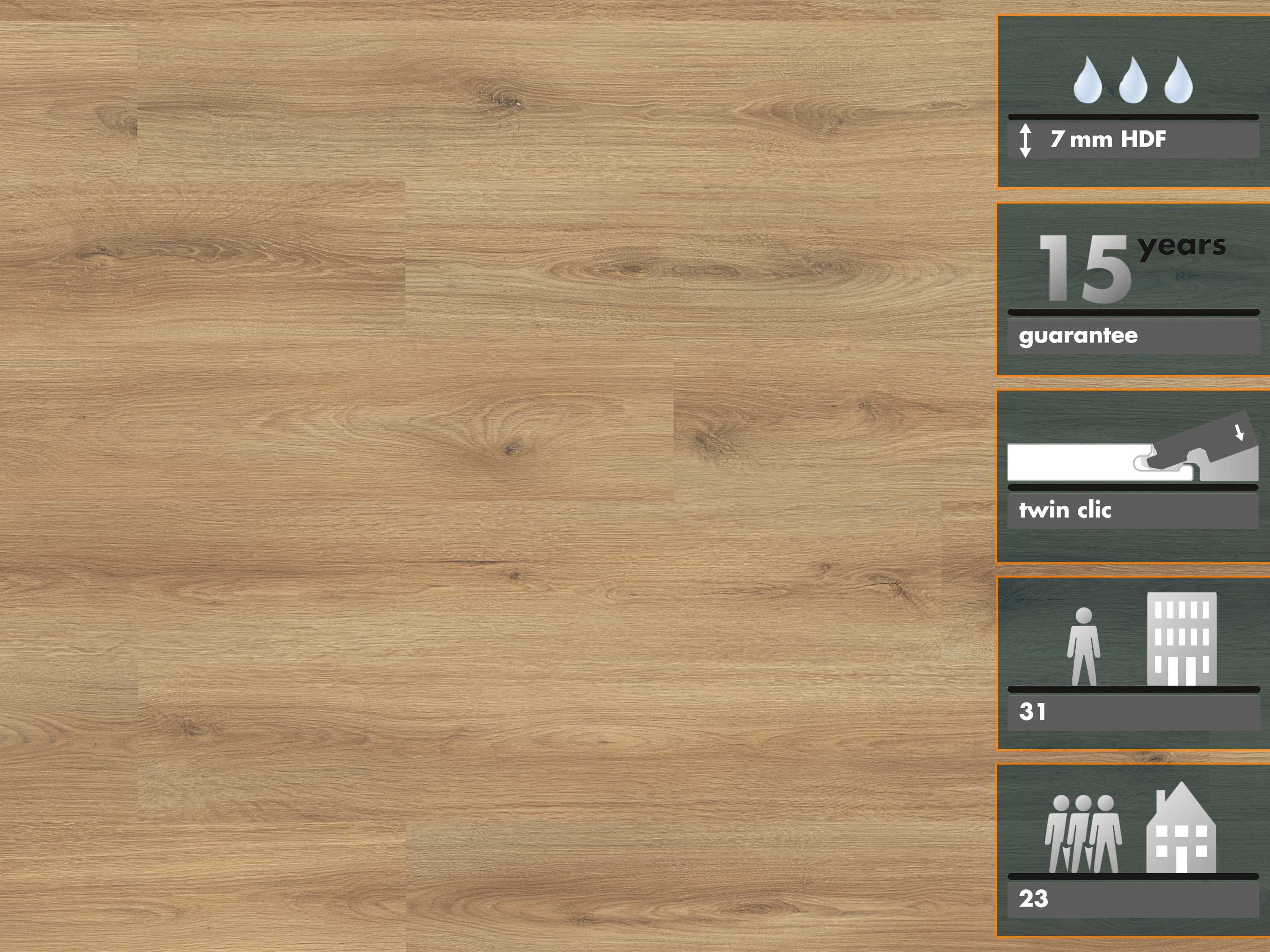 Hochwertiges Klick-Laminat mit feuchtraumgeeigneten Produktaufbau, 12 mm stark.