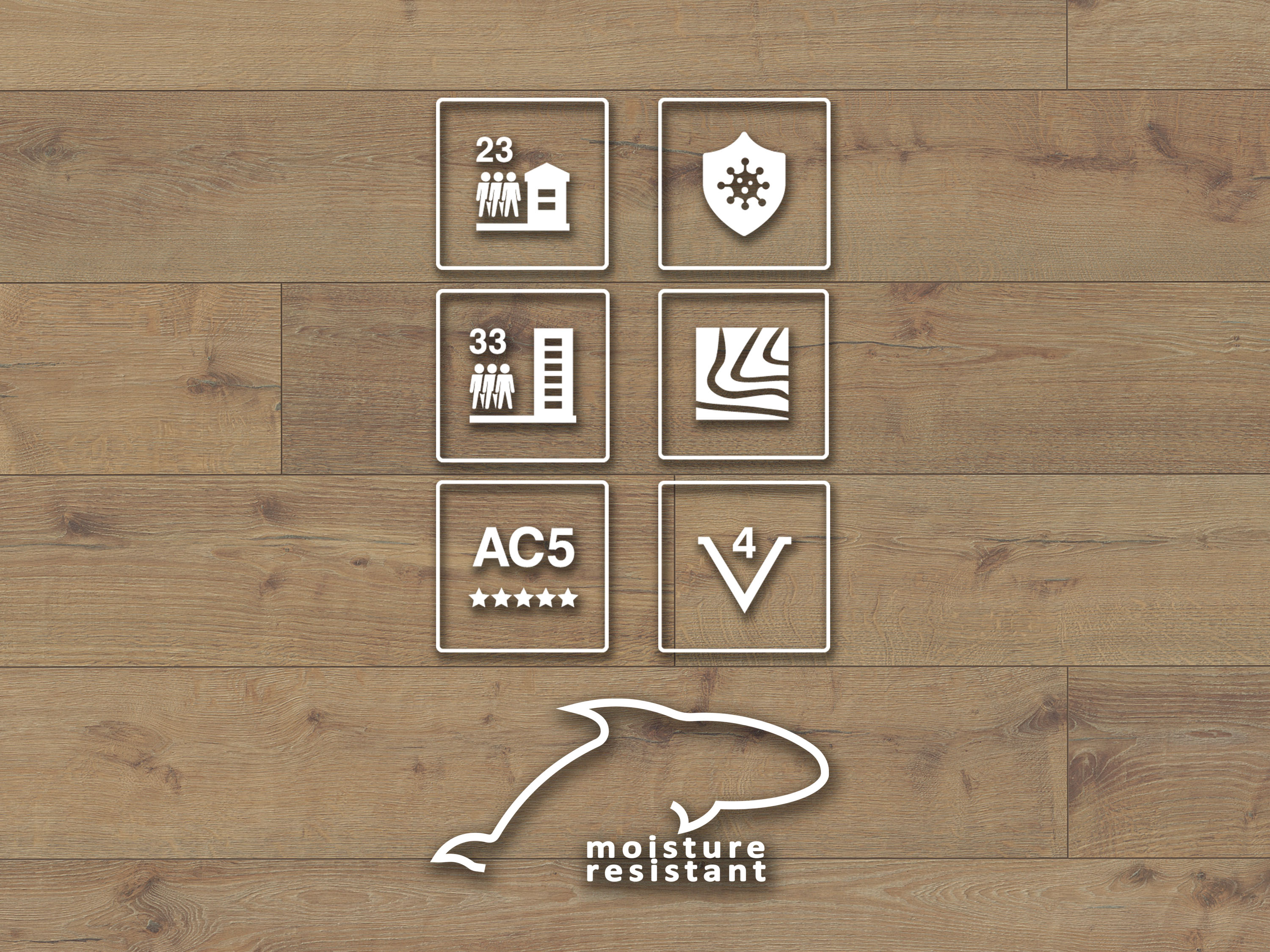 Ausgestattet mit dem praktischen 1clic 2go pure+ System verspricht die Altitude Kollektion eine einfache Installation und ein makelloses Finish. Dank der MO.RE! Technologie bietet der Boden 48 Stunden Feuchtigkeitsschutz, was ihn ideal für feuchte Bereiche macht, ohne dabei Kompromisse bei der Haltbarkeit einzugehen. Die haustierfreundlichen Eigenschaften erhöhen zusätzlich seine Anpassungsfähigkeit und sorgen für Langlebigkeit und einfache Pflege. Erhältlich in einer Vielzahl von Farbtönen, ermöglicht diese Kollektion Ihnen, Ihren Raum individuell zu gestalten und jeden Einrichtungsstil zu ergänzen, indem sie die zeitlose Schönheit von Holz mit der Praktikabilität und Haltbarkeit moderner Laminatböden vereint.