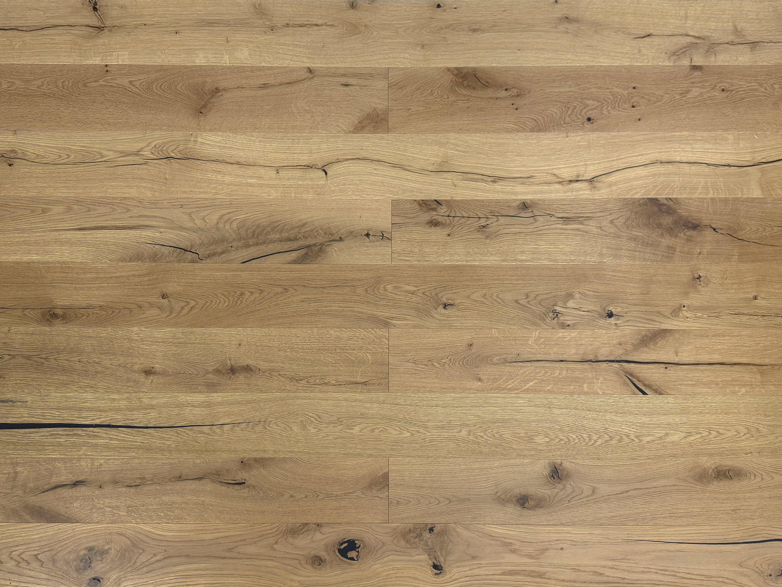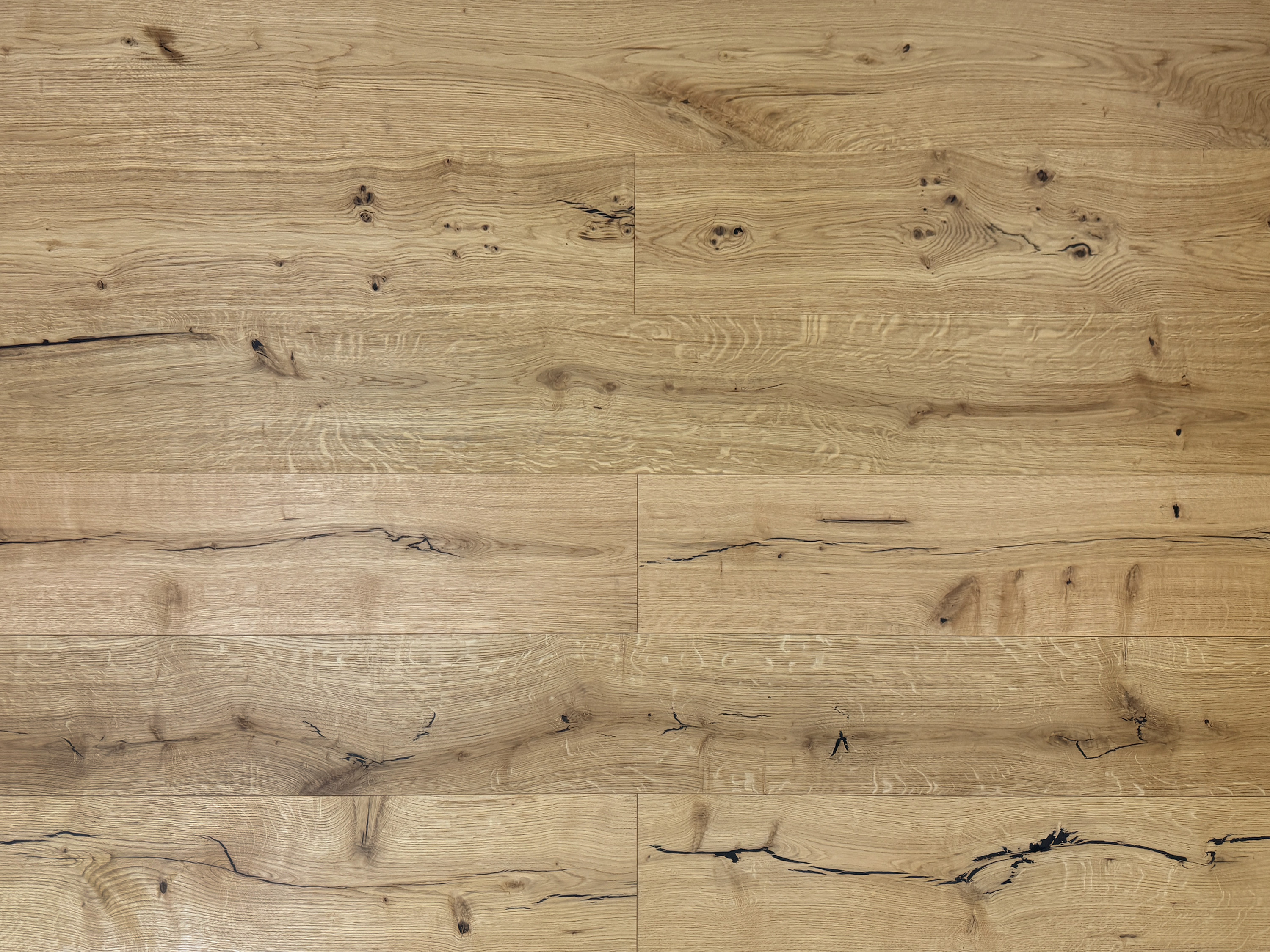 Eiche Parkett Landhausdiele Crudo Rubio R920 endgeölt und gefast. Das exquisite Fertigparkett lässt durch seine edle Optik jeden Raum großzügig und einladend wirken - setzen Sie zeitlose Akzente zu jedem Einrichtungsstil.