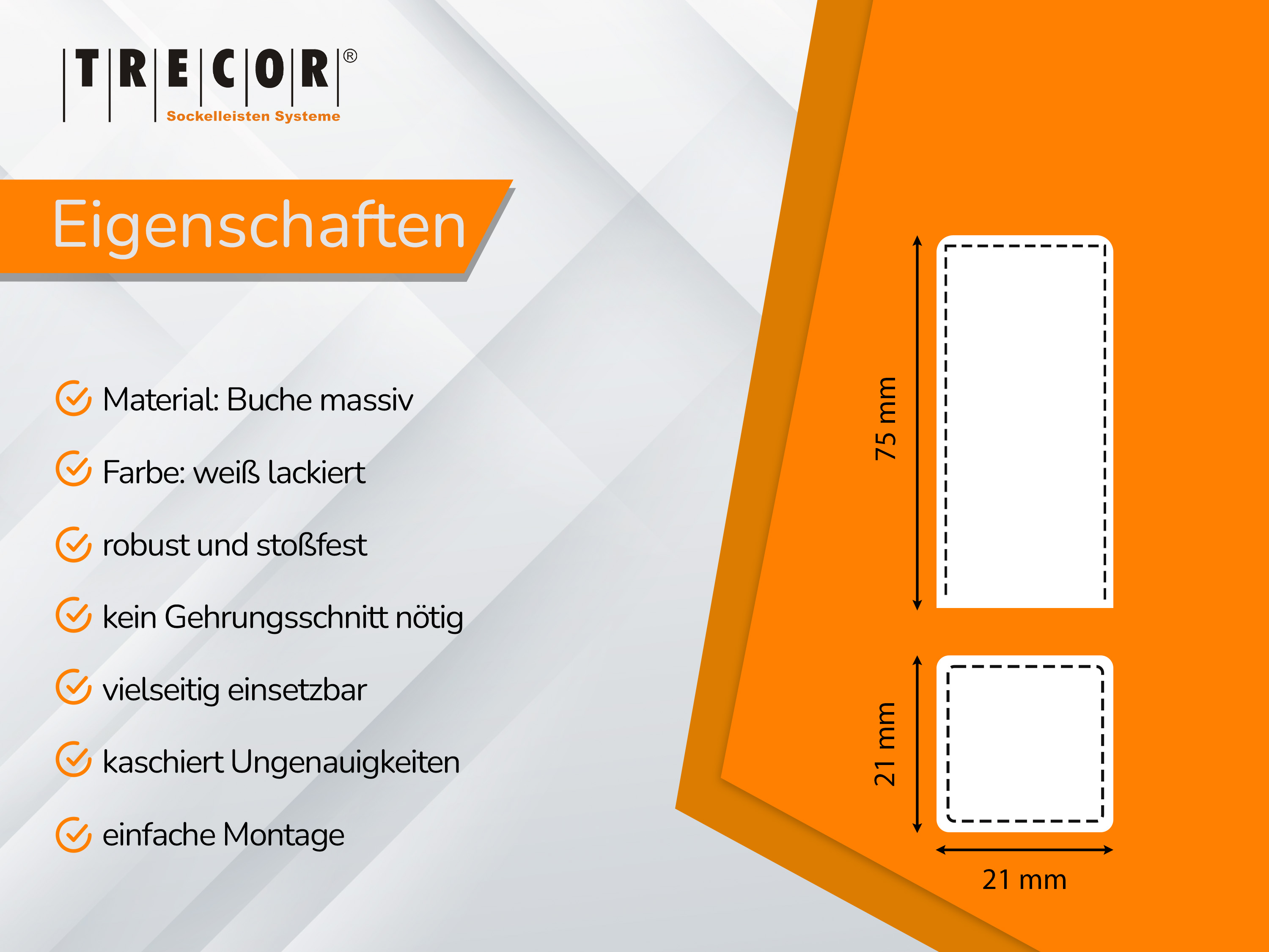 | passend für: | weiße Sockelleisten |