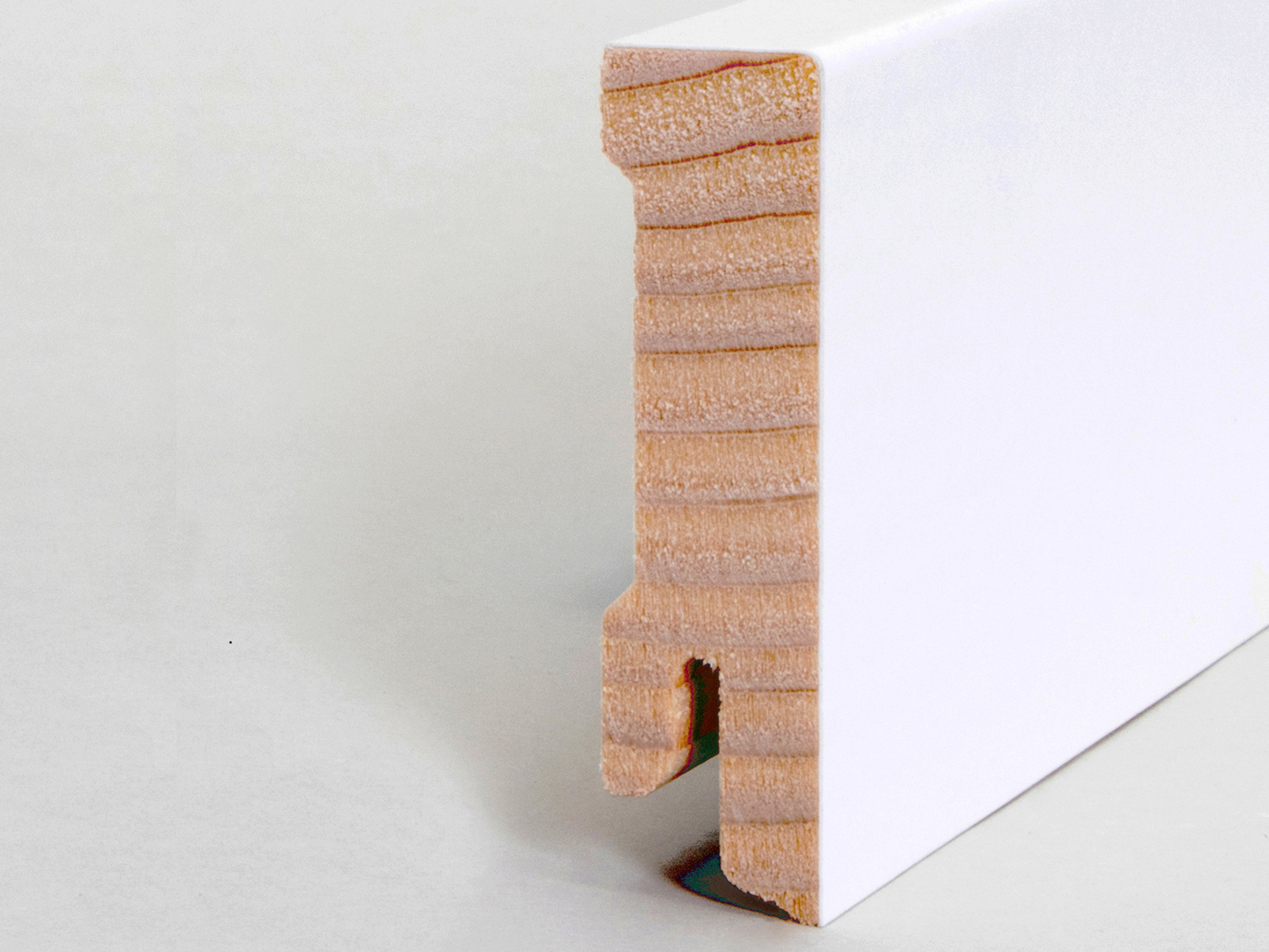 CUBE Sockelleiste Massivholzträger, Fußleiste 16 x 58 mm, Länge 2,40 m in Weiß