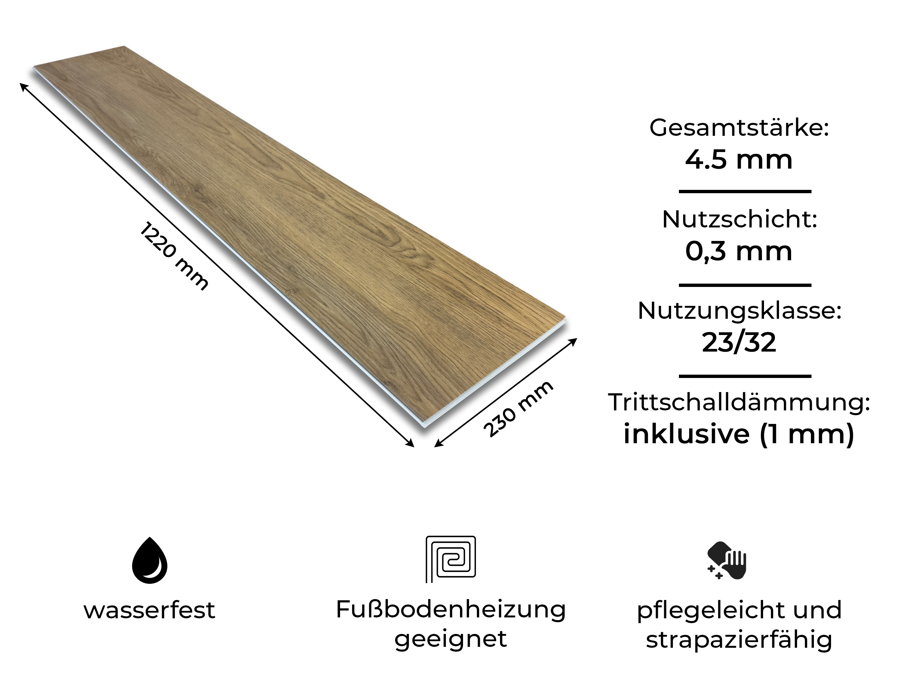 - Maße: 1220 x 230 x 4,5 mm