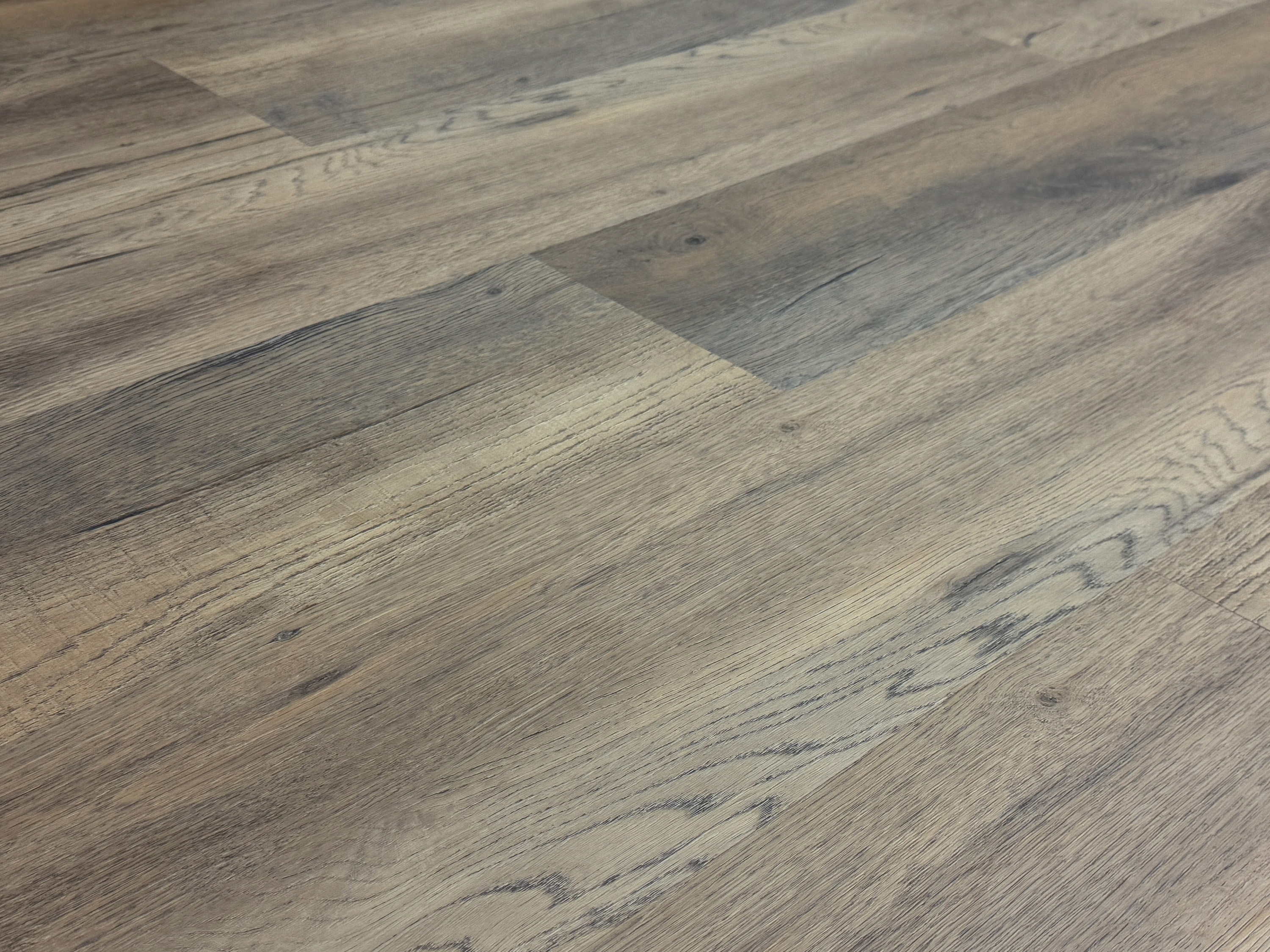 moderner Rigid-SPC-Boden mit integrierter Trittschalldämmung und 5G Klicksystem. Die umlaufende, farblich abgestimmte V4-Fuge und die authentische Landhausdielenoptik verleihen jedem Raum ein natürliches und stilvolles Ambiente bei gleichzeitig hoher Strapazierfähigkeit und Pflegeleichtigkeit. NKL 33/42