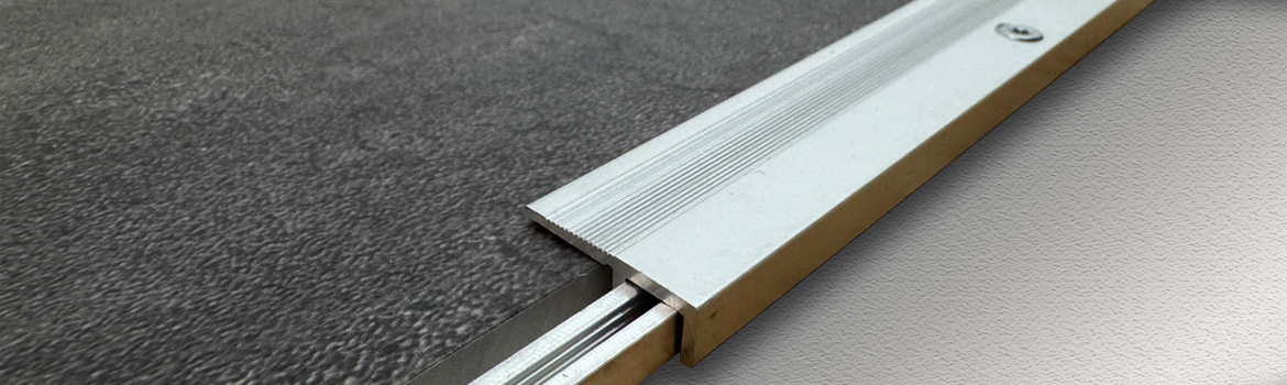 60 mm breites Übergangsprofil für große Flächen, die durch eine Dehnungsfuge geteilt werden müssen oder für Türdurchgänge mit einer Belagshöhe von 7-16 mm