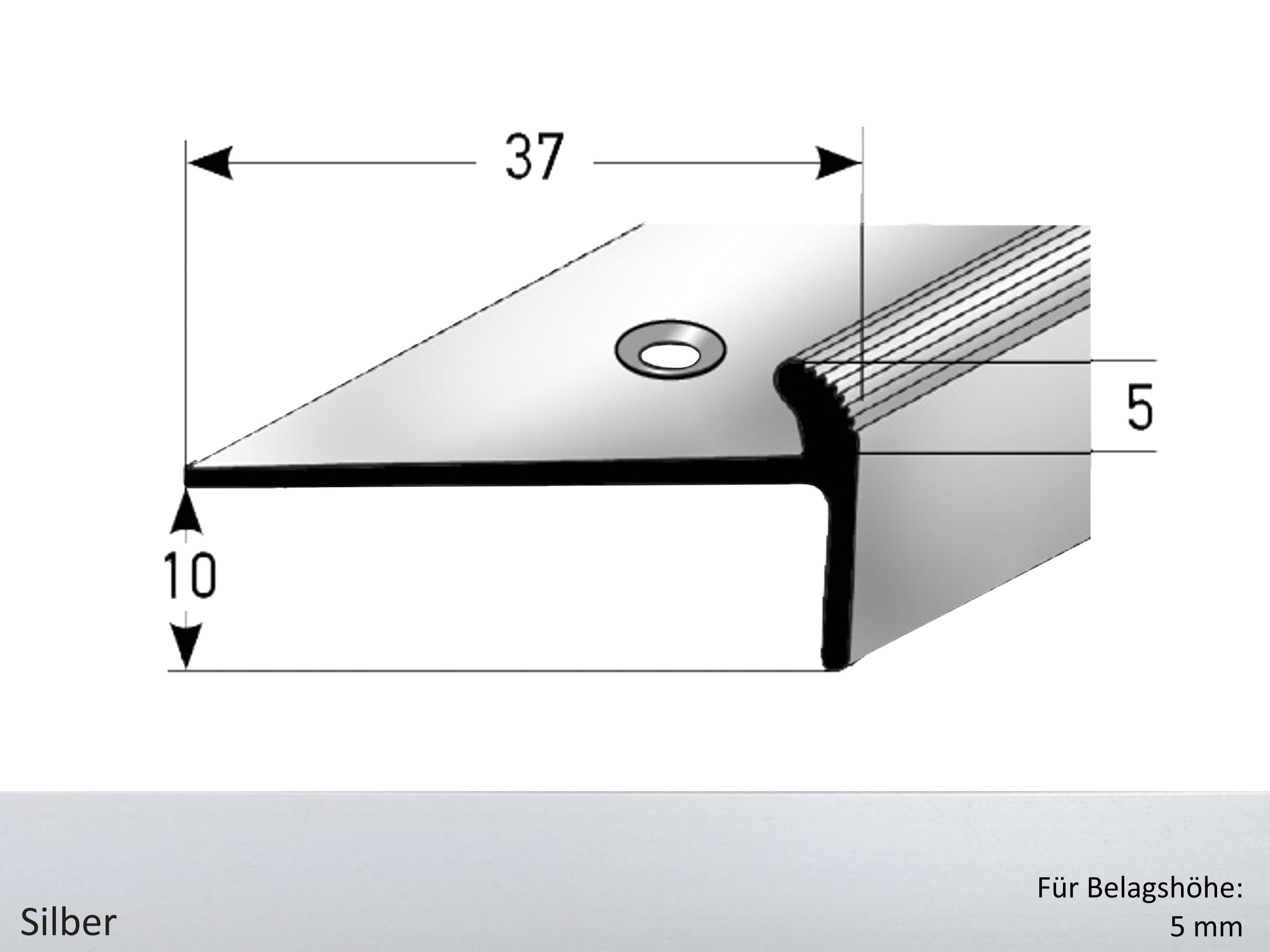 Dieses Aluminium-Treppenkantenprofil dient der einseitigen Verkleidung von Treppenstufen mit Vinyl- oder Teppichboden. Für alle Treppenstufen sowie Bodenbeläge von 5 mm verwendbar. Dieses Alu-Profil wird direkt vor der Vinyl- oder Teppichverlegung montiert (geschraubt oder geklebt).