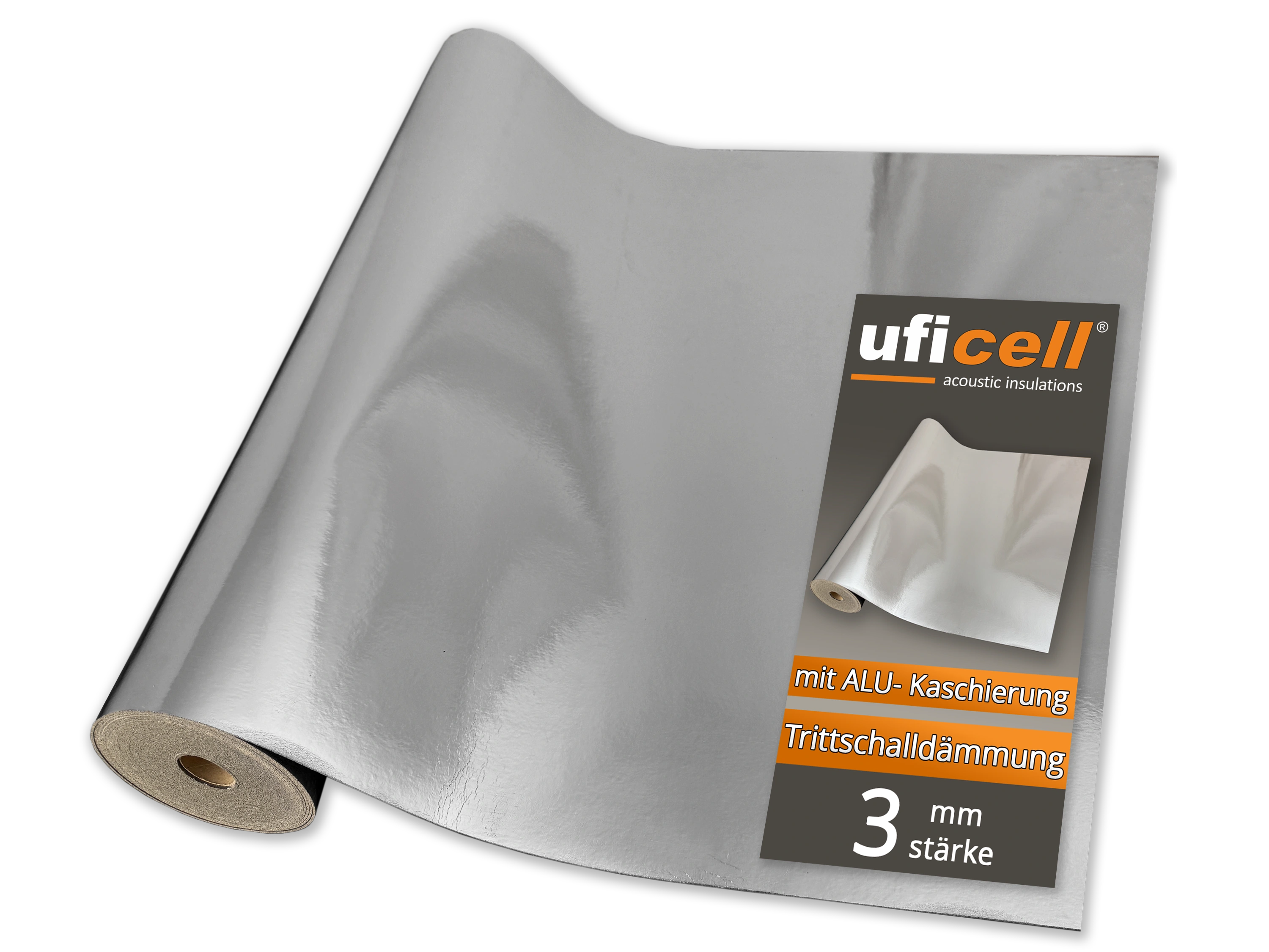 Trittschalldämmung uficell® SILENCE FLOOR AKUSTIK ALU | 2 mm - Die Alleskönner mit Long-Life-Performance - leise, effizient, für die stabile Klick-Verbindung