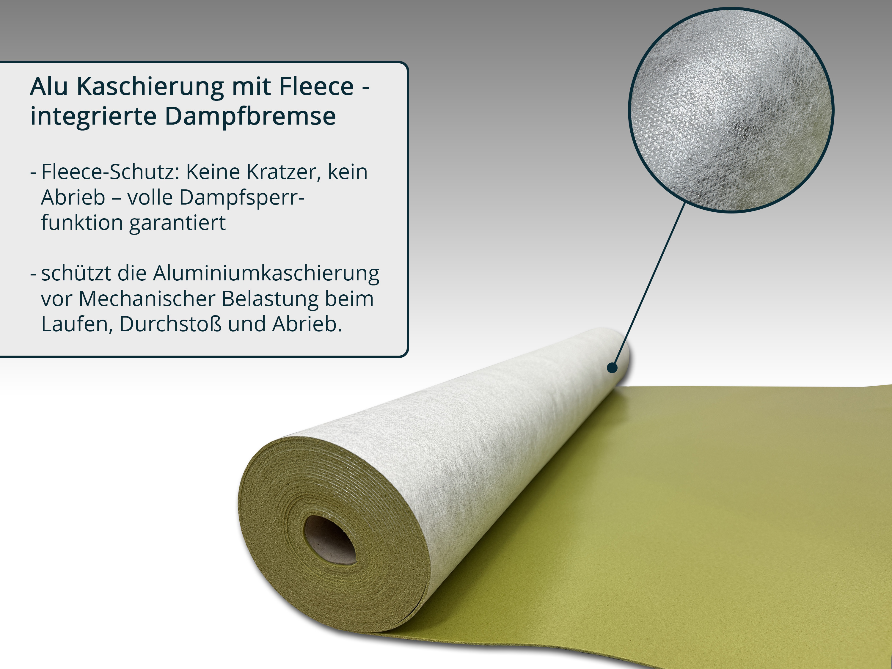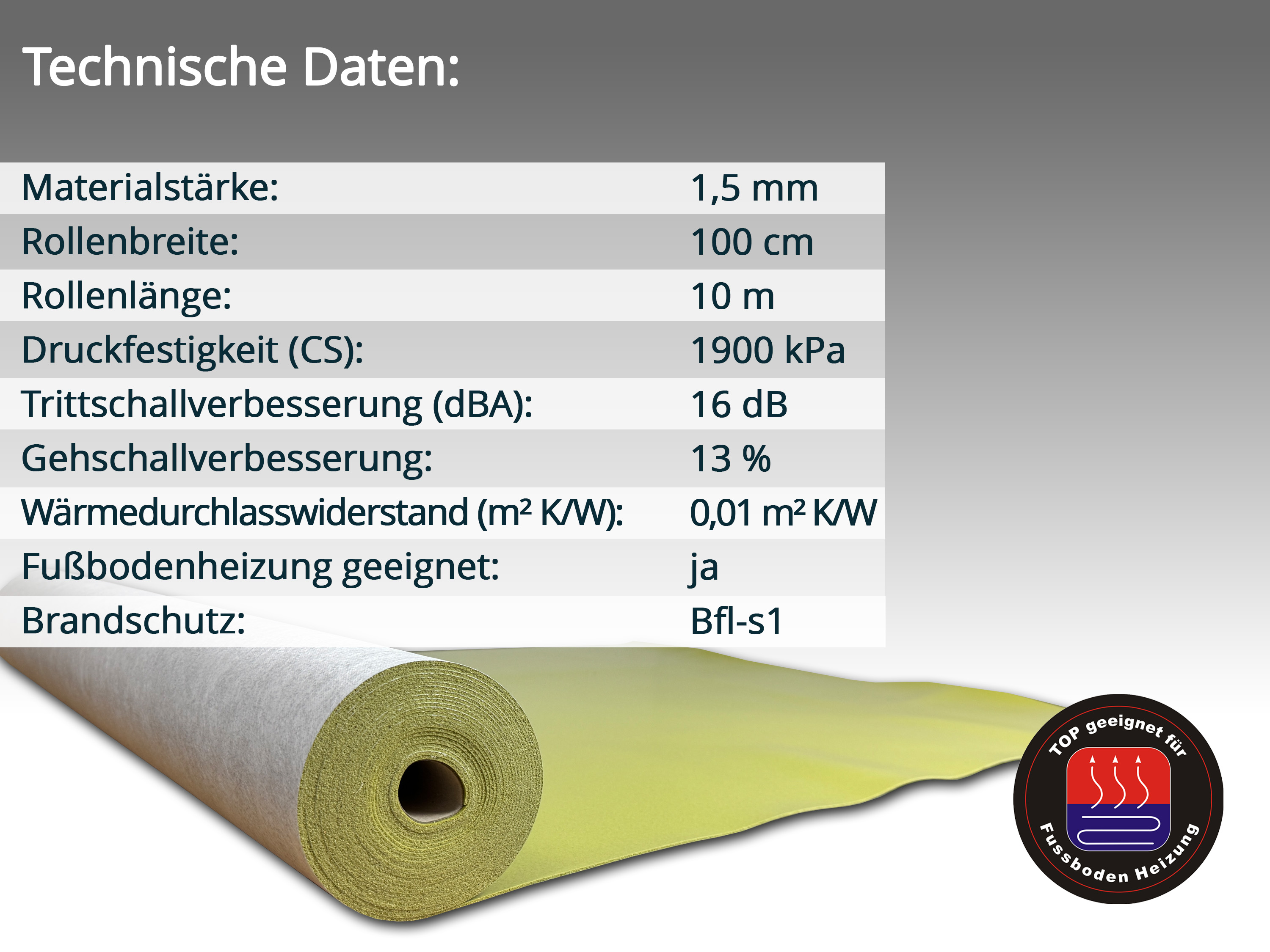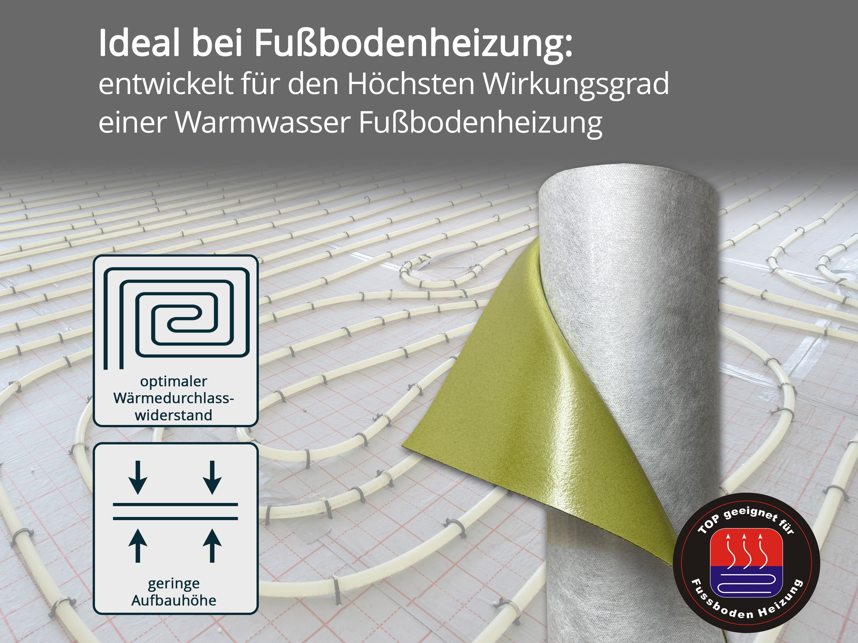 - Hervorragend geeignet bei Fußbodenheizung (0,001 m² K/W)