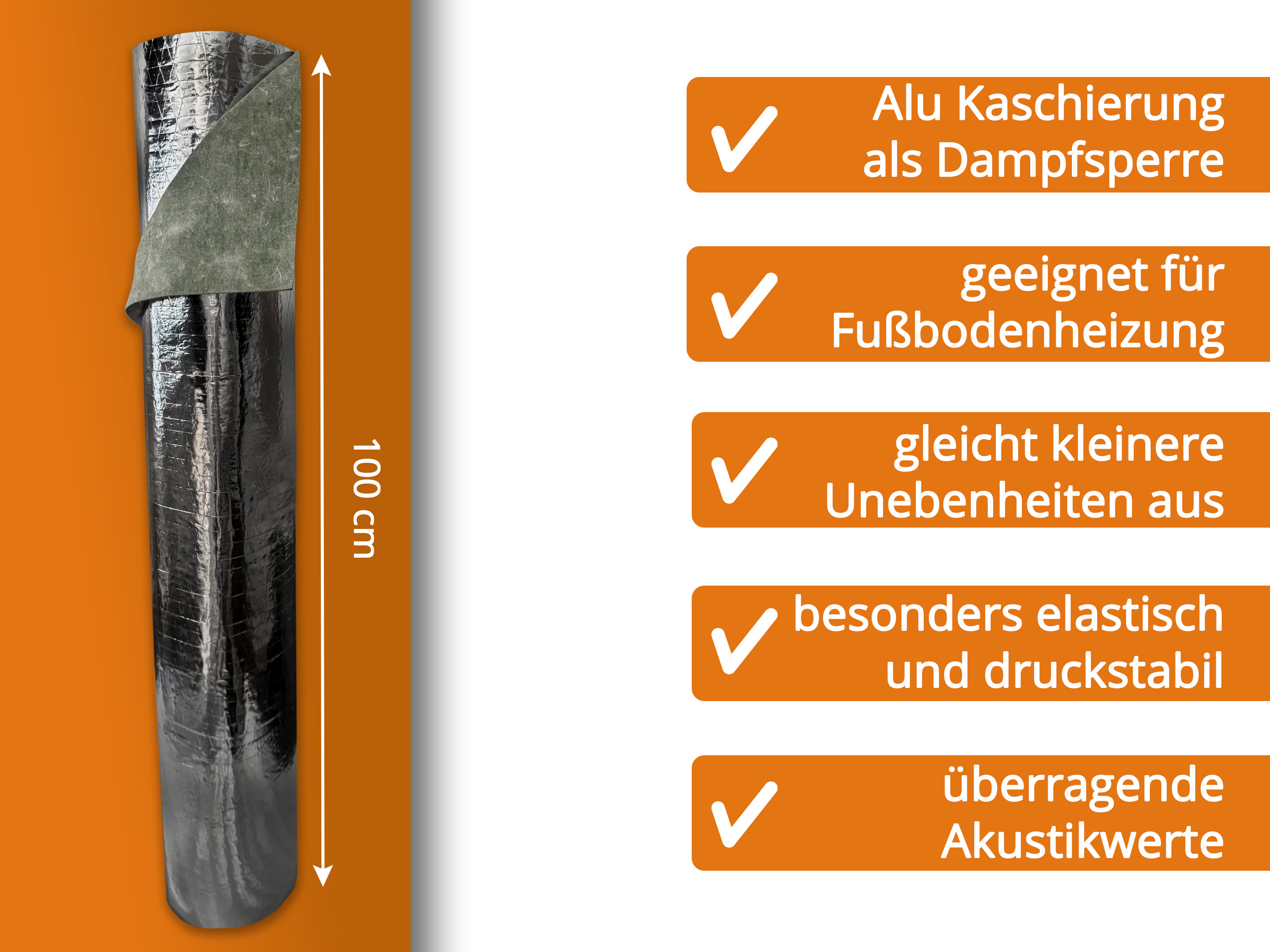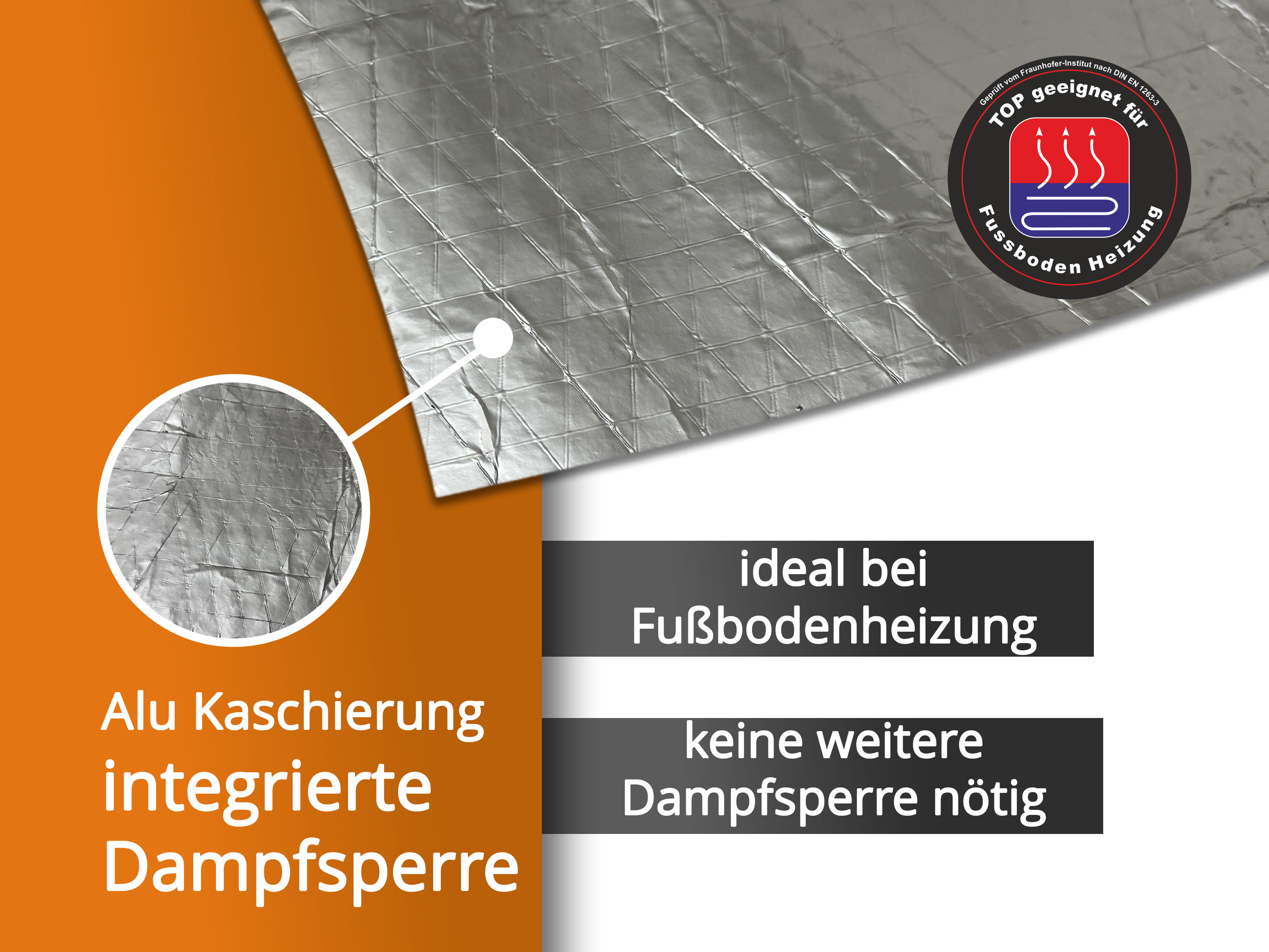 die beste Unterlage bei Fußbodenheizung sowie Gehschallverbesserung (ALU ist ein perfekter Wärmeleiter)
