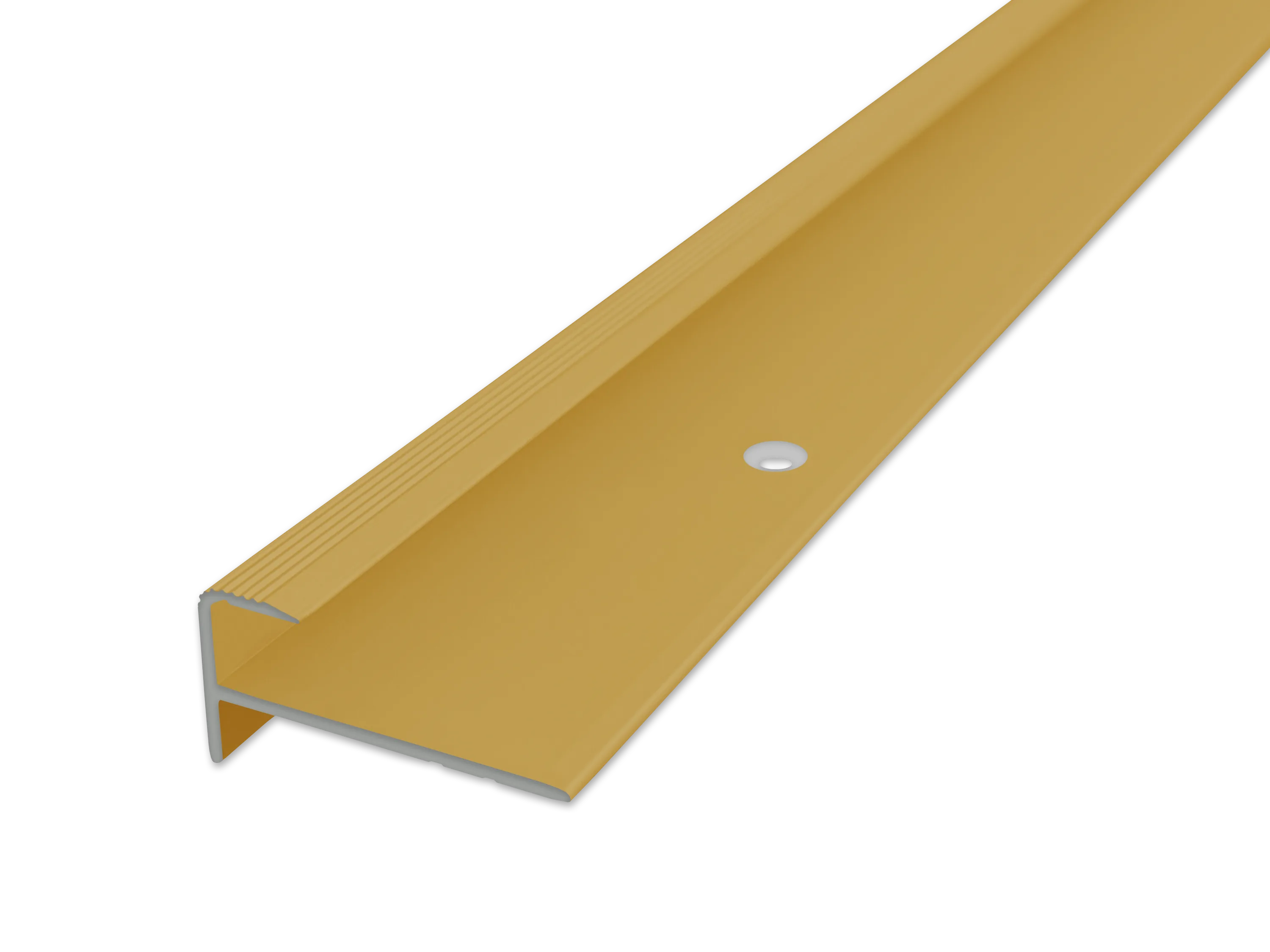 Treppenwinkelprofile erhalten Sie bei uns in unterschiedlichen Ausführungen und vielseitigen Aluminium Eloxalfarben. Die kostengünstigste, einfache und schnelle Montage dieser Treppenkantenprofile sprechen für sich. Sie können dieses Treppenkantenprofil auf alle Holz- und Betontreppen sowie für alle Bodenbeläge wie Vinyl, Laminat, Kork, Fertigparkett, Fliesen usw. verwenden.