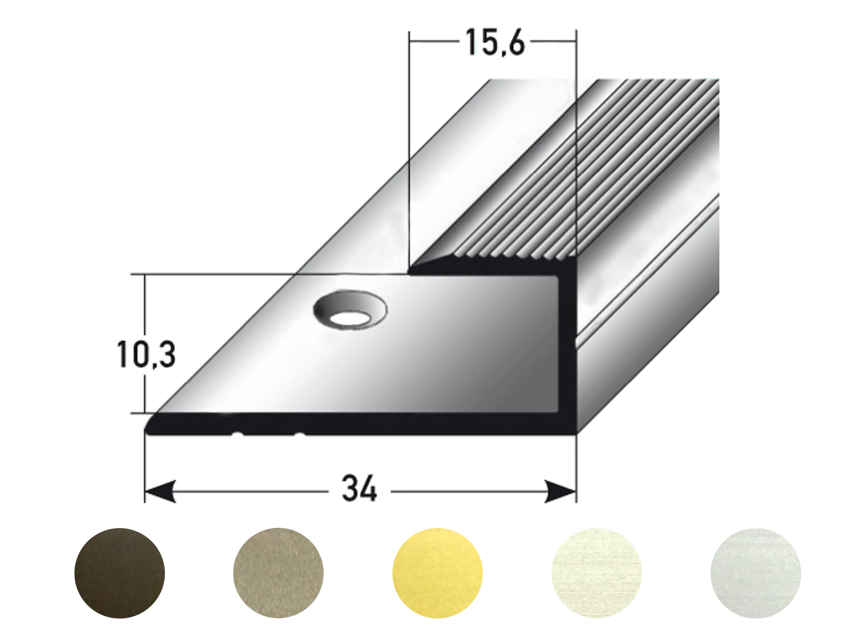 Mit den Einschubprofil, Abschlussprofil erreichen Sie einen optimalen Kantenschutz für den Fußbodenbelag. Sie können dieses Abschlussprofil auf alle Holz und Betontreppen sowie für alle Bodenbeläge wie Vinyl, Laminat, Kork, Fertigparkett, Fliesen usw. verwenden. Dieses Endprofil / Abschlußprofil sorgt nicht nur für einen sicheren Auftritt, sondern darüber hinaus auch für eine optische Aufwertung. Ihren Bodenbelag Aluminium-Profile dienen dem sauberen Abschluss und dem Schutz von Bodenbelägen, wo diese besonders belastet werden.