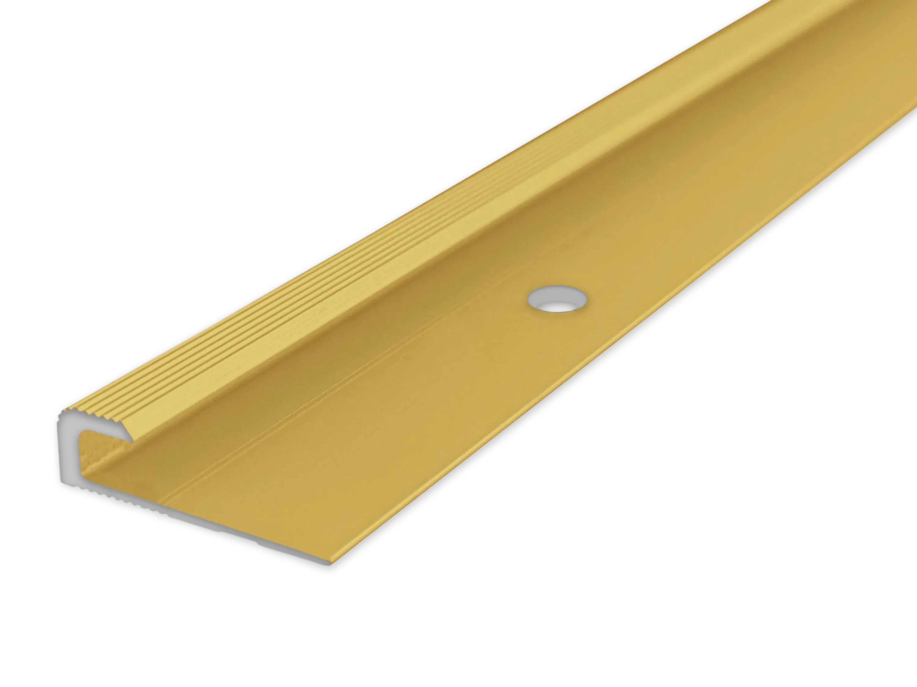 Mit den Einschubprofil, Abschlussprofil erreichen Sie einen optimalen Kantenschutz für den Fußbodenbelag. Sie können dieses Abschlussprofil auf alle Holz und Betontreppen sowie für alle Bodenbeläge wie Vinyl, Laminat, Kork, Fertigparkett, Fliesen usw. verwenden. Dieses Endprofil / Abschlußprofil sorgt nicht nur für einen sicheren Auftritt, sondern darüber hinaus auch für eine optische Aufwertung. Ihren Bodenbelag Aluminium-Profile dienen dem sauberen Abschluss und dem Schutz von Bodenbelägen, wo diese besonders belastet werden.