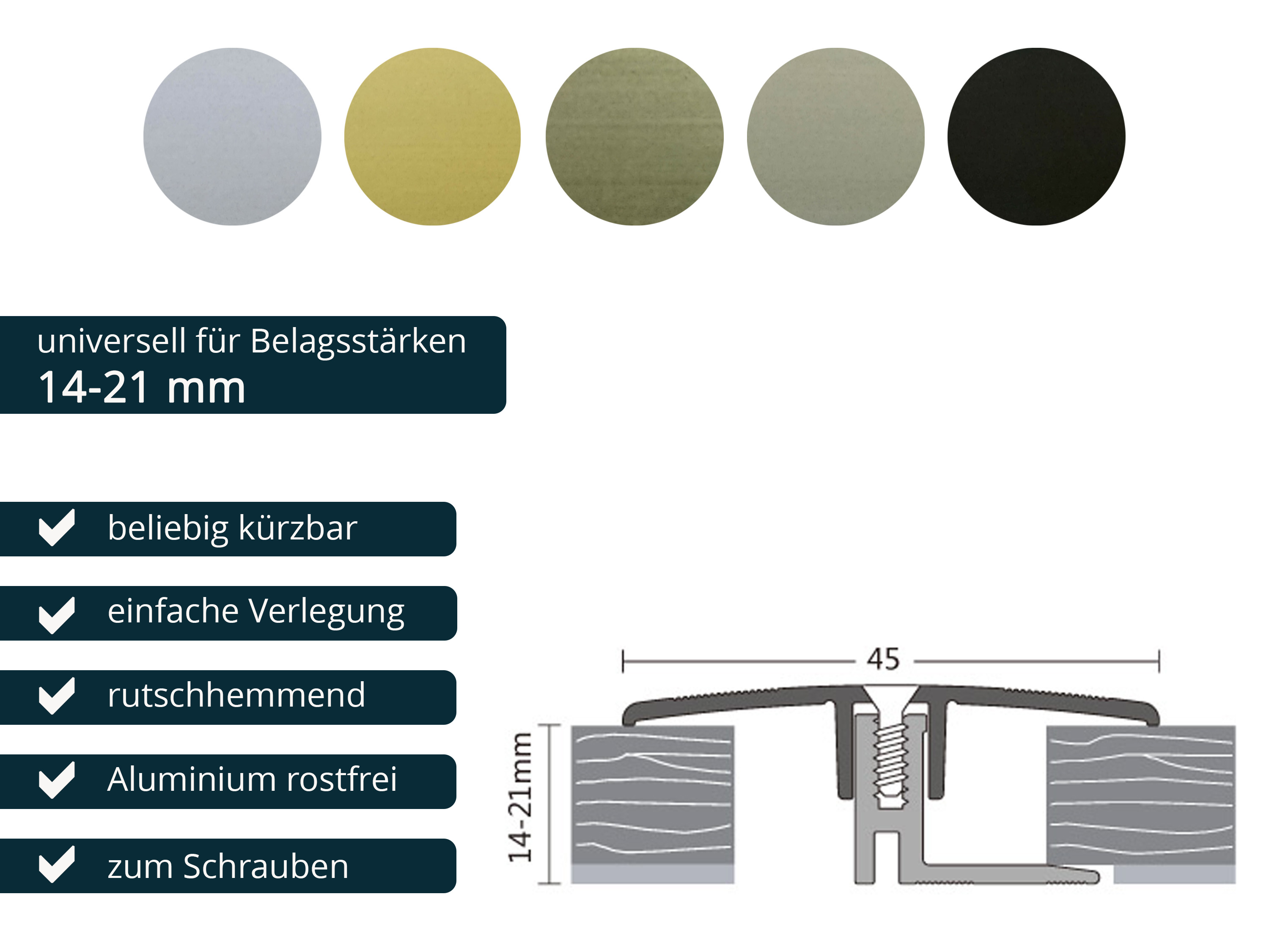 - Aluminium eloxiert - für Belagshöhen von 14-21 mm