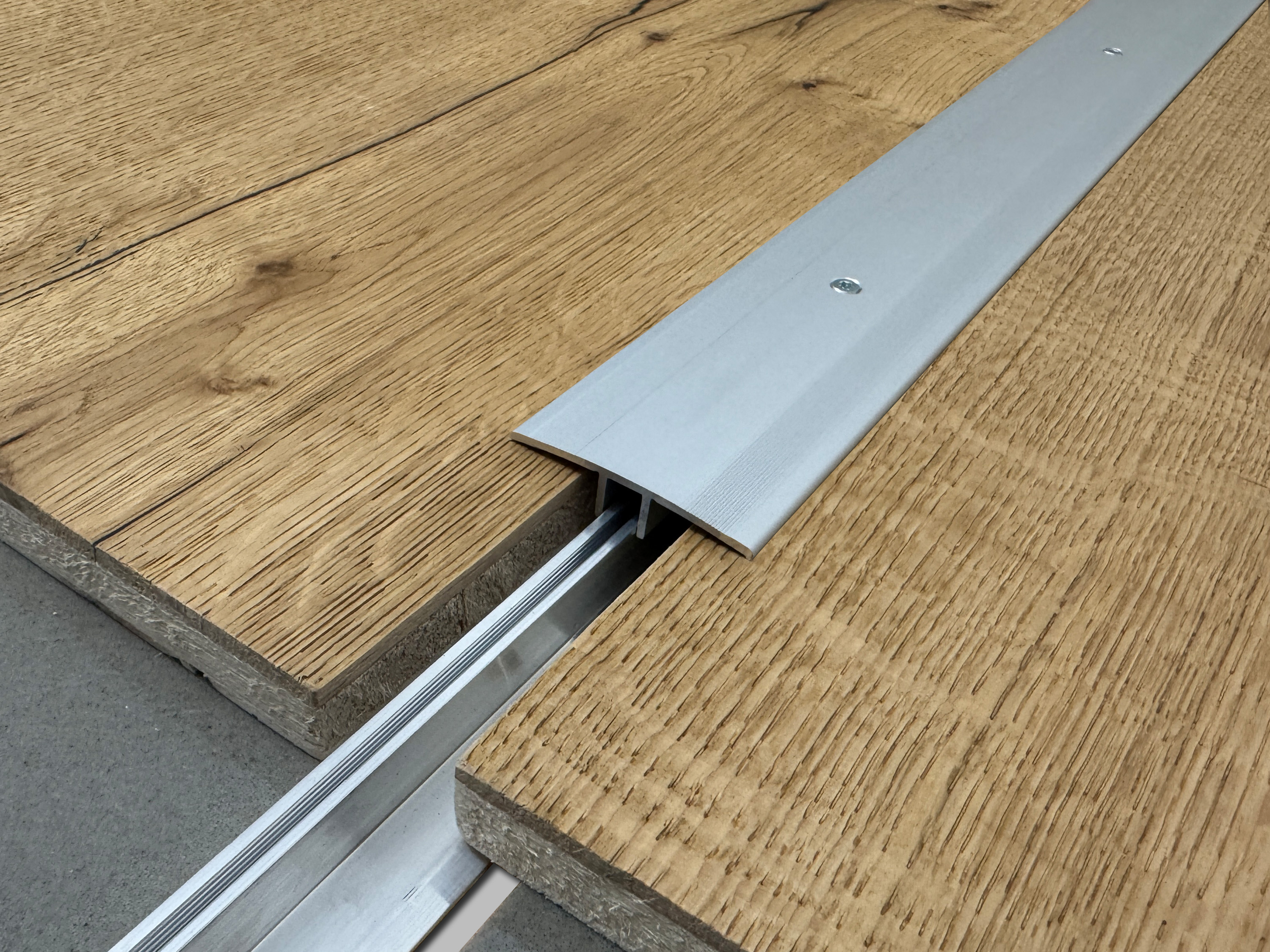 Dehnungsfuge mit extra Breitem Deckmaß von 45 mm - für große Flächen, die durch eine Dehnungsfuge geteilt werden müssen oder für Türdurchgänge mit einer Belagshöhe von 14-21 mm