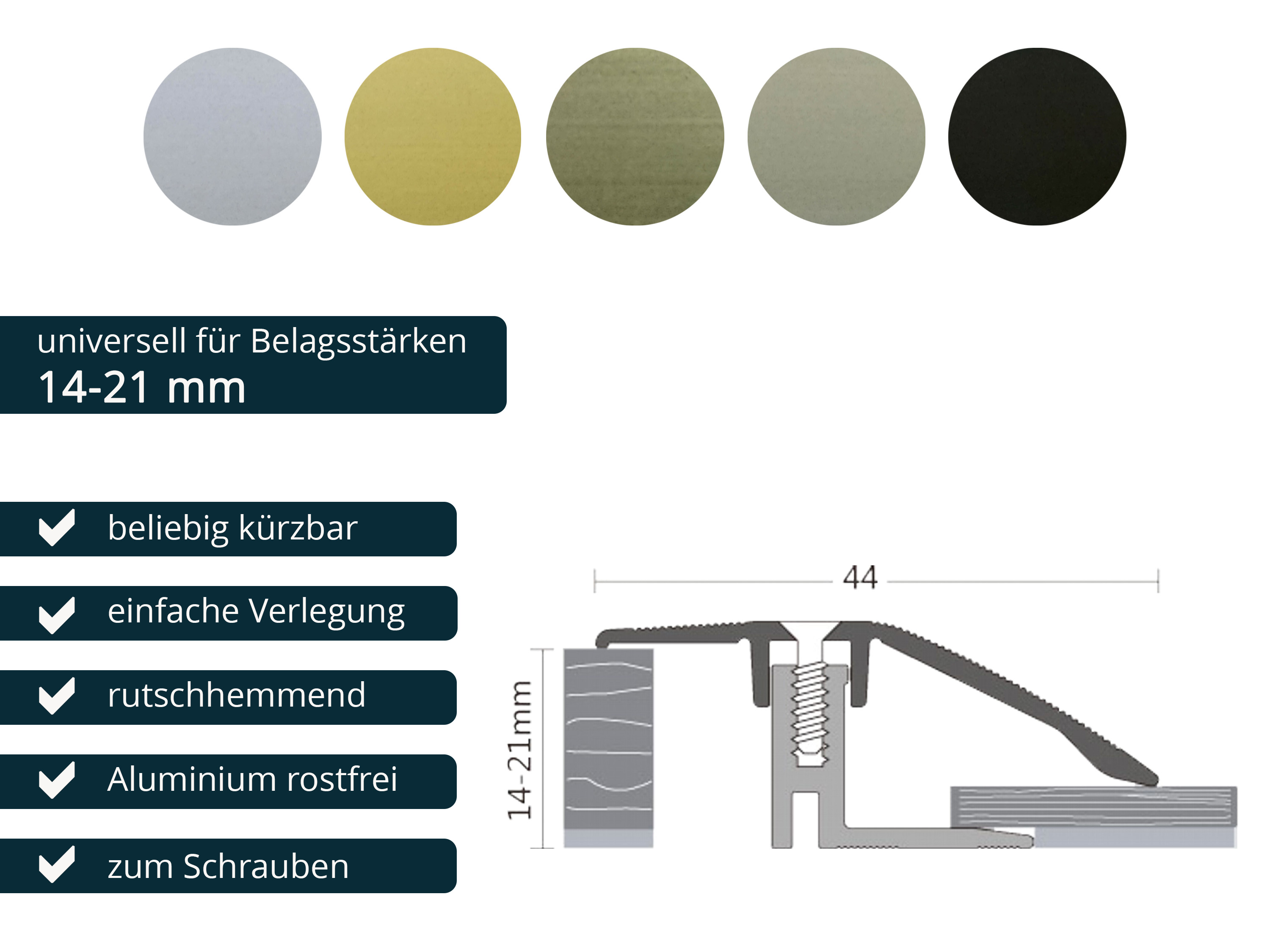 - Aluminium eloxiert - für Belagshöhen von 14-21 mm