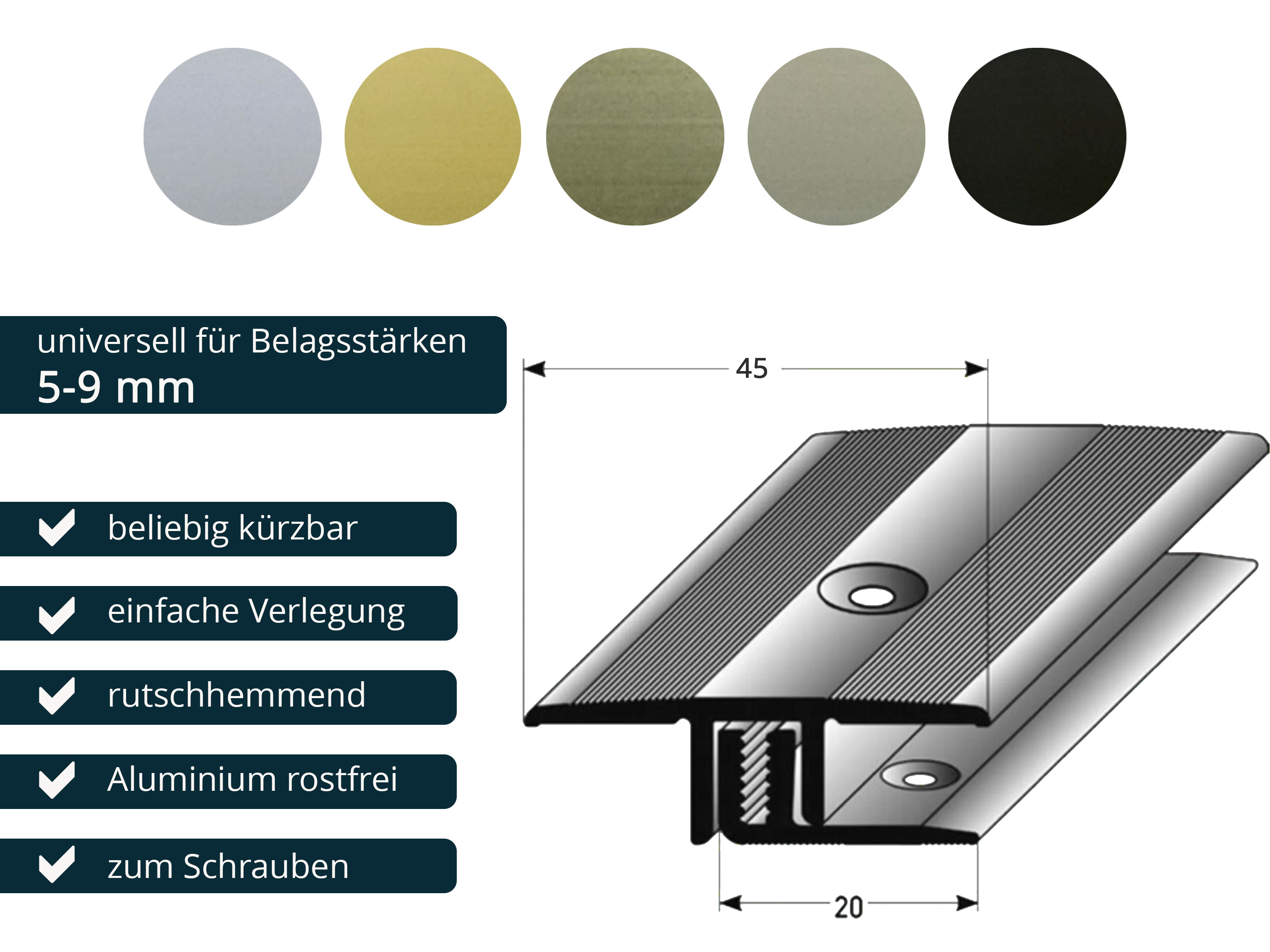 - Aluminium eloxiert - für Belagshöhen von 5 - 9 mm