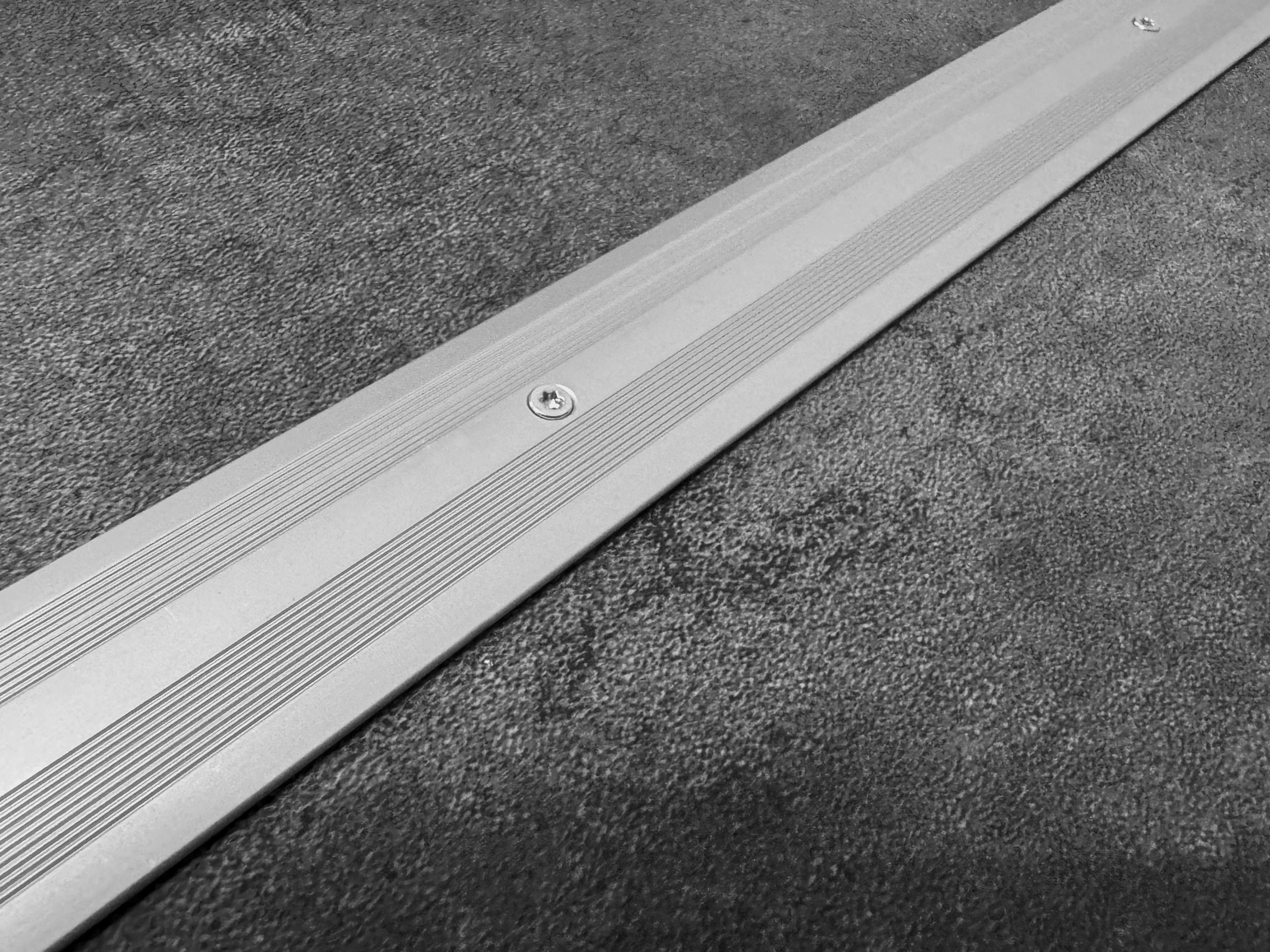 Äußerst stabiles Übergangsprofil für große Flächen, die durch eine Dehnungsfuge geteilt werden müssen oder für Türdurchgänge mit einer Belagshöhe von 5-9 mm. Durch die schmale Sichtbreite von nur 33 mm verschwindet das Profil bei geschlossenem Zustand der Tür unsichtbar darunter. Die spezielle Konstruktion (automatische Höheneinstellung) ermöglicht auch den Einsatz mit geringen Höhenunterschieden. Für etwas breitere Dehnungsfugen wurde die Serie mit einem 45 mm und 60 mm breiten Übergangsprofil Profil ergänzt.
