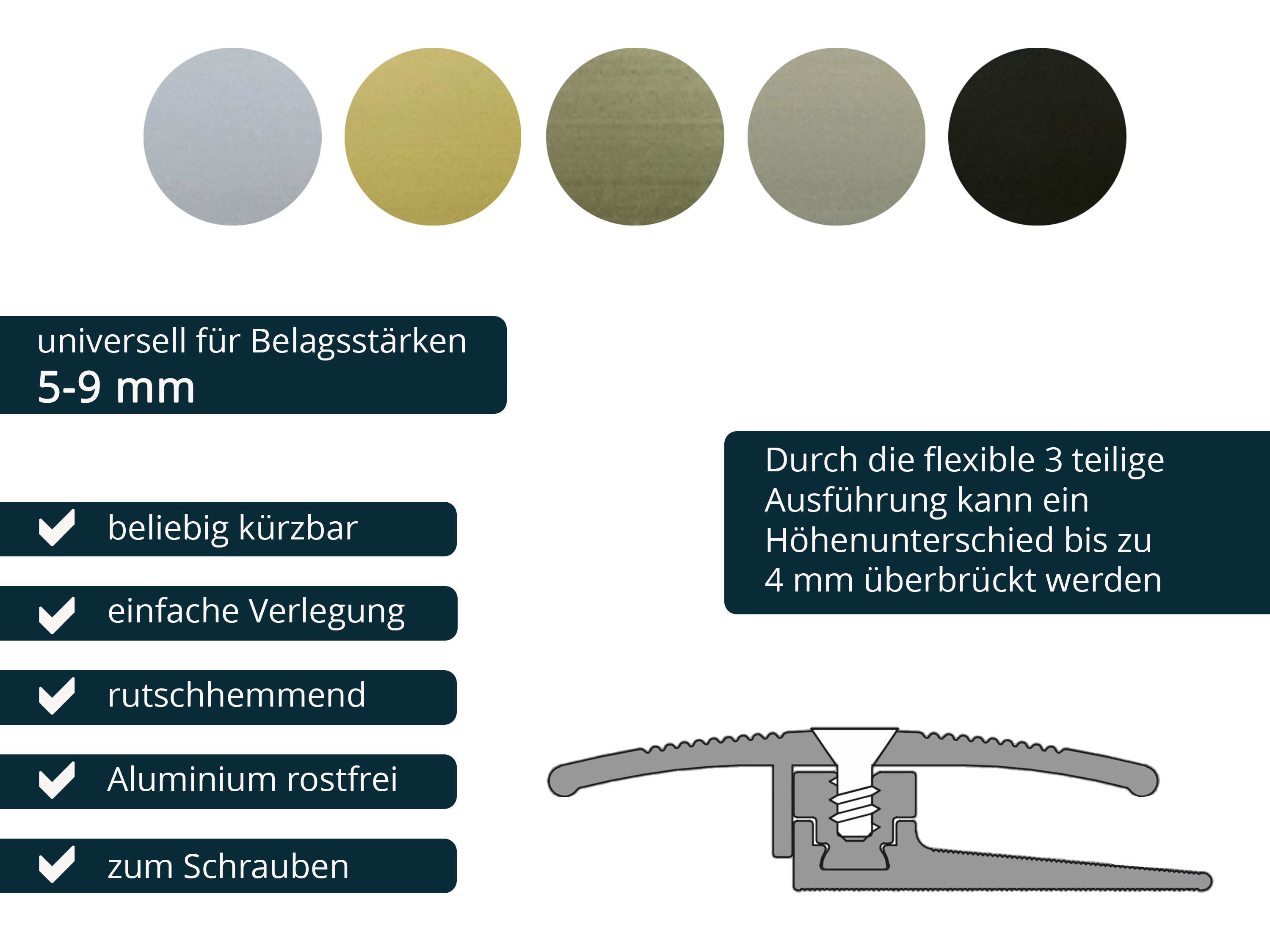- Aluminium eloxiert - für Belagshöhen von 5 - 9 mm