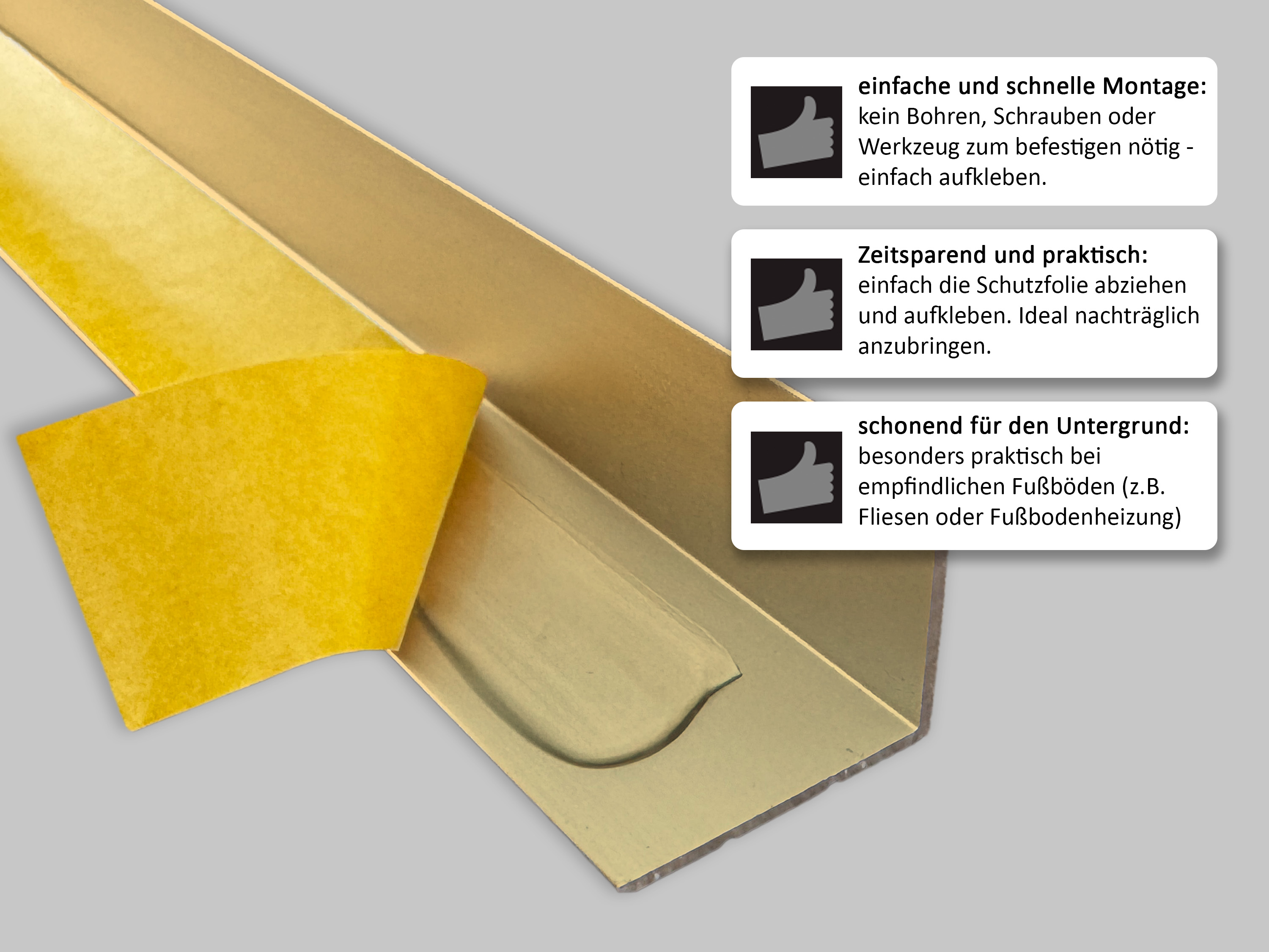 - kürzbar zur universellen Montage zum Kleben auf allen Fußbodenbelägen